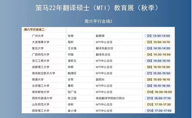 2022年9月24日下午,我院参与由联合国官方翻译服务供应商策马集团主办、策马分公司承办的 2022策马翻译硕士(MTI)秋季教育展,与百余高校同台宣讲,面向广大考生推介MTI。