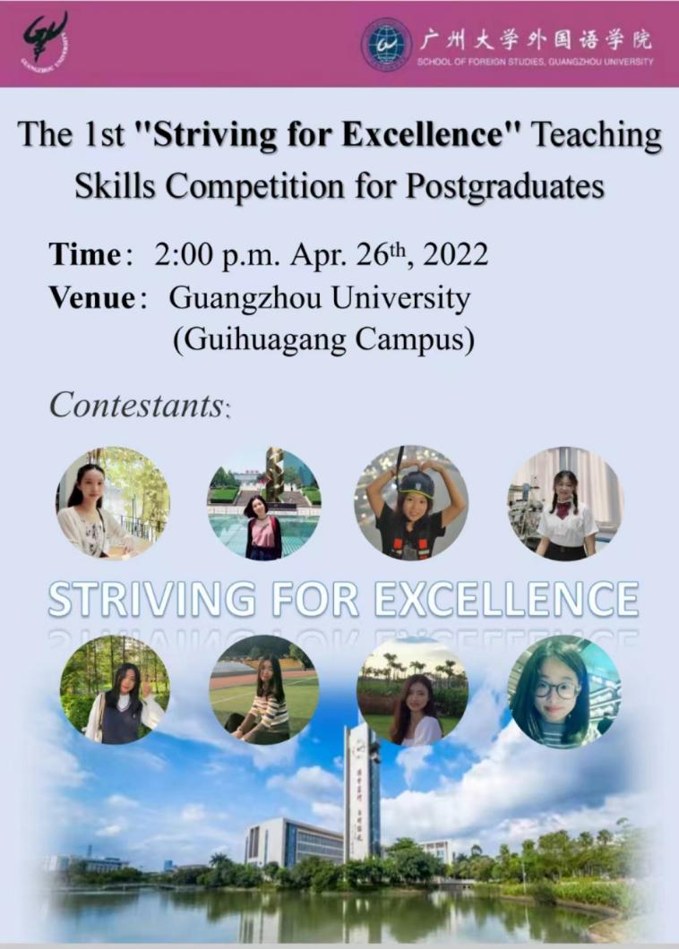 于2022年4月26日下午在桂花岗校区举办了首届“至善杯”研究生英语教学技能大赛决赛。经过初赛选拔,本次共有八位选手进入决赛。决赛包括说课和模拟授课两部分,以考查选手的教学设计能力以及课堂教学能力。