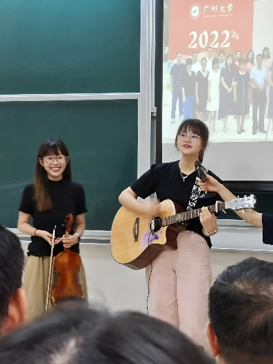 最后,研究生黄倚秋和叶潼凌为全场带来了一曲充满活力和激情的“500 Miles”。自由边缘乐队演奏了“A Thousand Years”和“月半小夜曲”,充分展示了学生们的多才多艺,为迎新会增添了文艺气息。23级研究生迎新会暨导师见面会在一片热烈的掌声中圆满落幕。