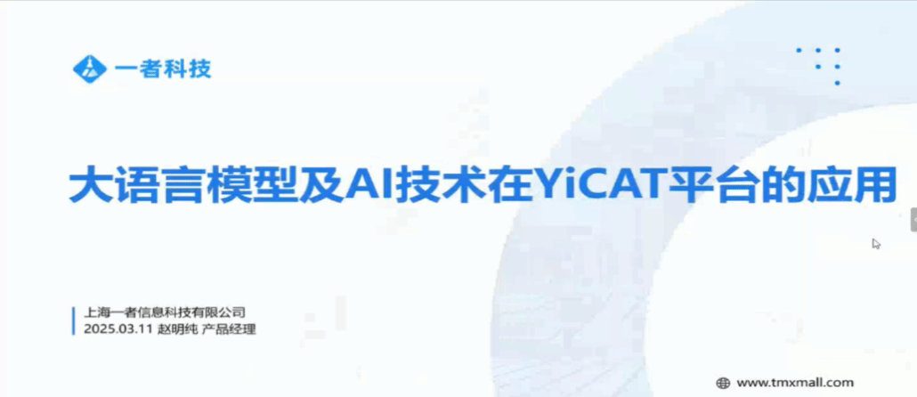2025年3月11日下午,我院特邀学院院级实习基地上海一者信息科技有限公司开展 “大语言模型及 AI 技术在 YiCAT 在线智能翻译管理平台的应用” 线上培训。本次培训由上海一者的产品经理赵明纯老师主讲,由我院MTI 副主任陈顺意副教授主持,副院长兼MTI中心主任汪东萍教授、倪秀华副教授、2023级和2024级28位MTI(英语笔译)学生、以及2022级英语专业本科生等近八十位师生参加培训。