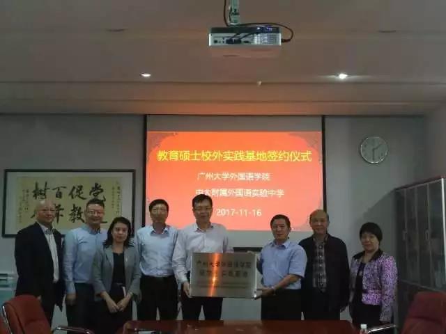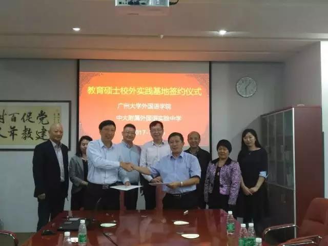 2017年11月16日,我院与中大附属外国语实验中学签订了合作协议,该校成为我院的教育硕士校外实践基地。我院院长肖坤学教授、研究生部主任朱亚夫副教授、院长助理徐俊仪副教授以及杨冬玲副教授参加了签约和揭牌仪式。