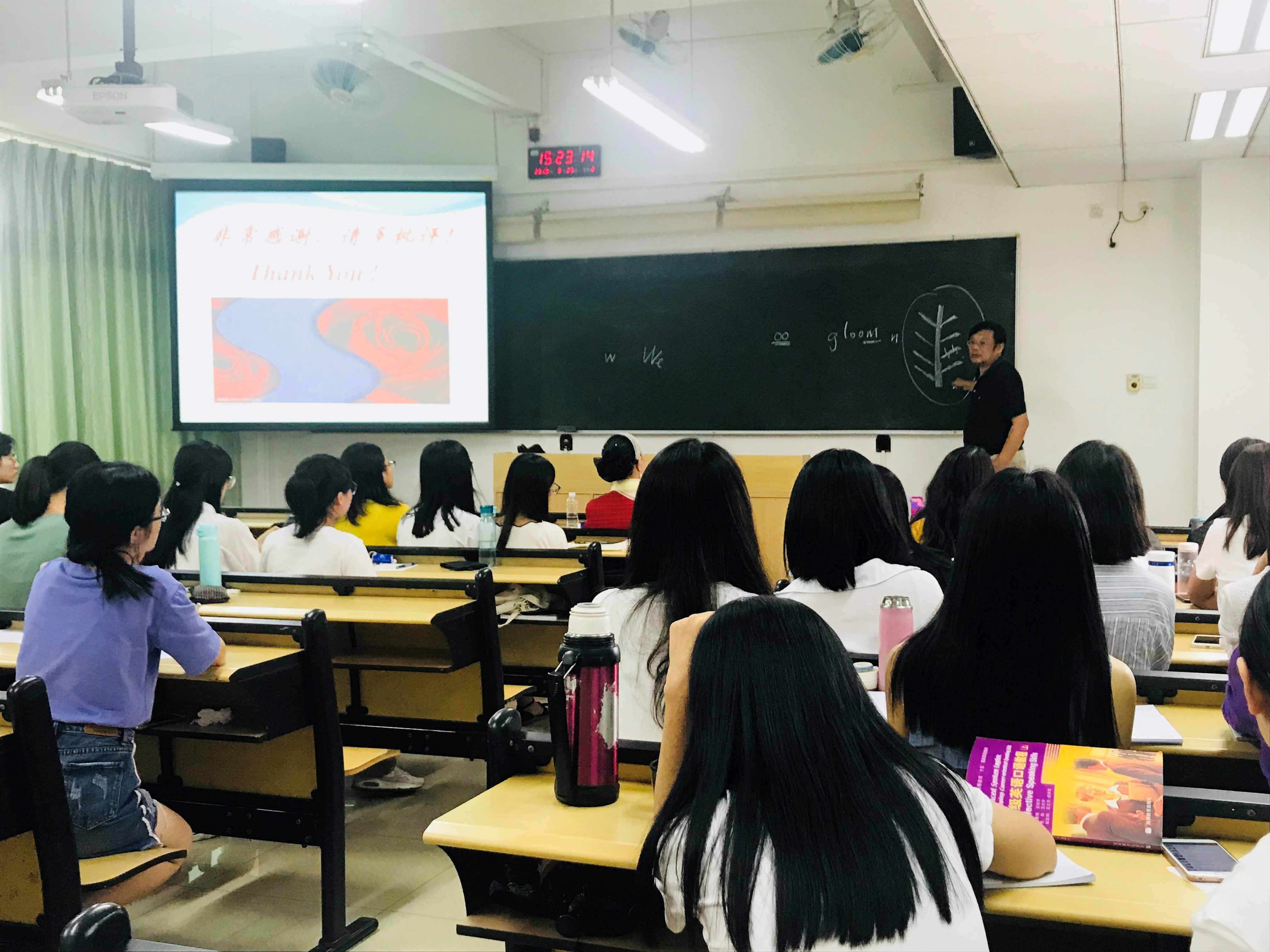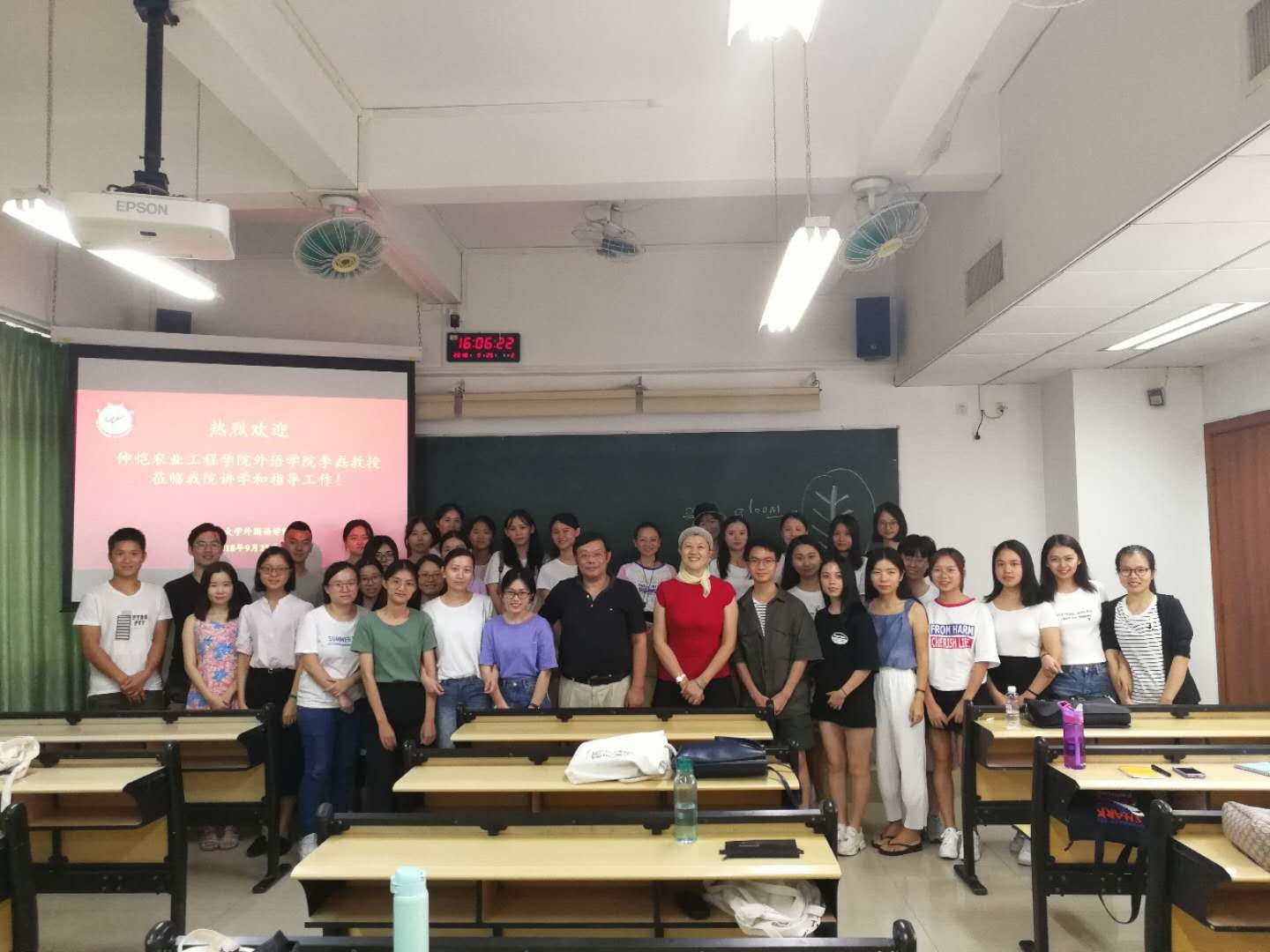 2018年9月25日下午,仲恺农业工程学院西瓜视频 李磊教授应邀来我院做主题为“灵魂的投影,内心的独白---ee 肯明斯诗歌探讨”的讲座。讲座由西瓜视频 副院长蒋晓萍教授主持,我院师生代表50余人聆听了本次精彩的讲座。