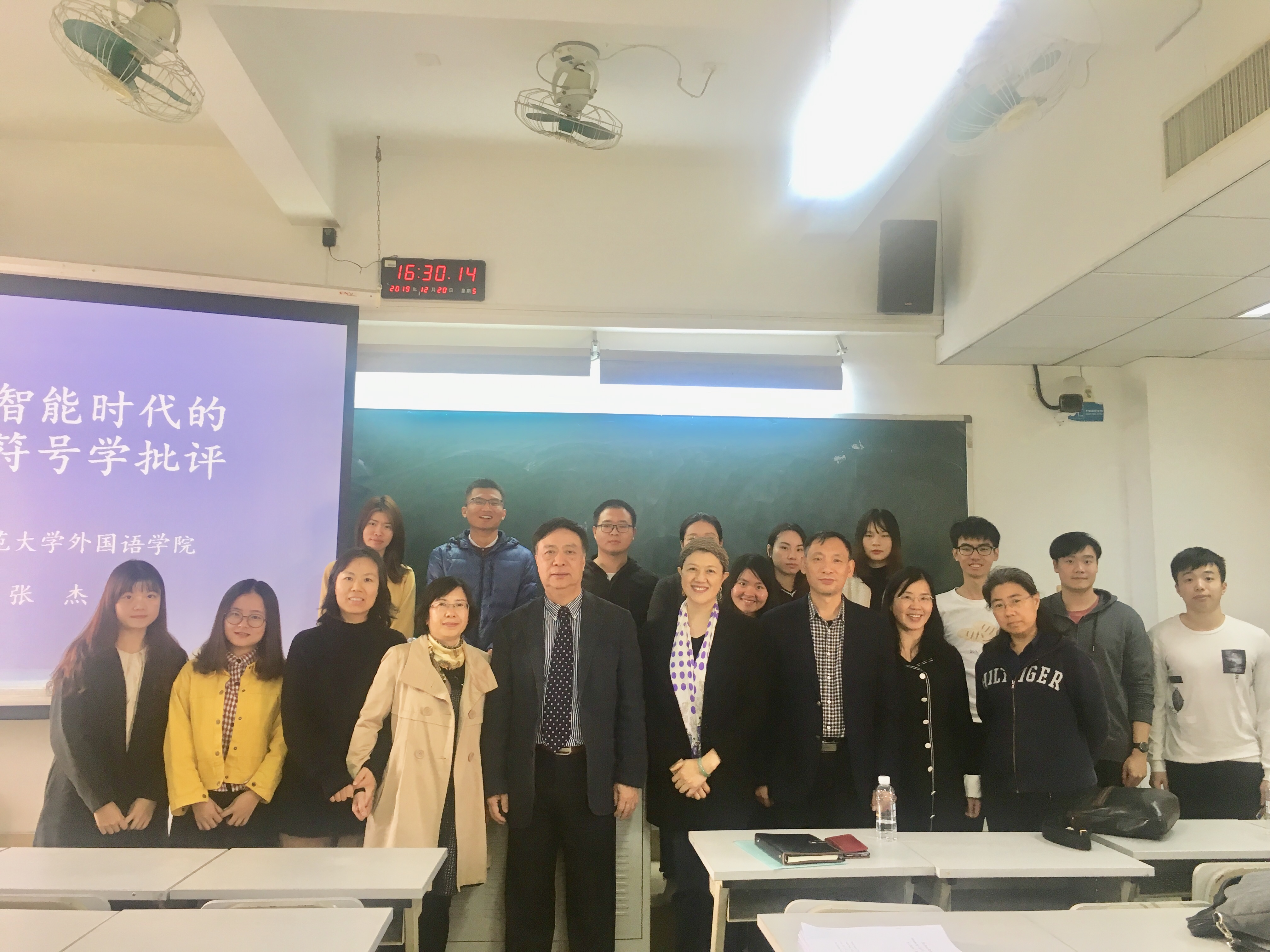 2019年12月20日下午2点,由张杰教授主讲的“人工智能时代的文学符号学批评”讲座,在西瓜视频 文清楼501室顺利举行。此讲座由西瓜视频 副院长蒋晓萍教授主持,我院众多师生积极参加了本次讲座。