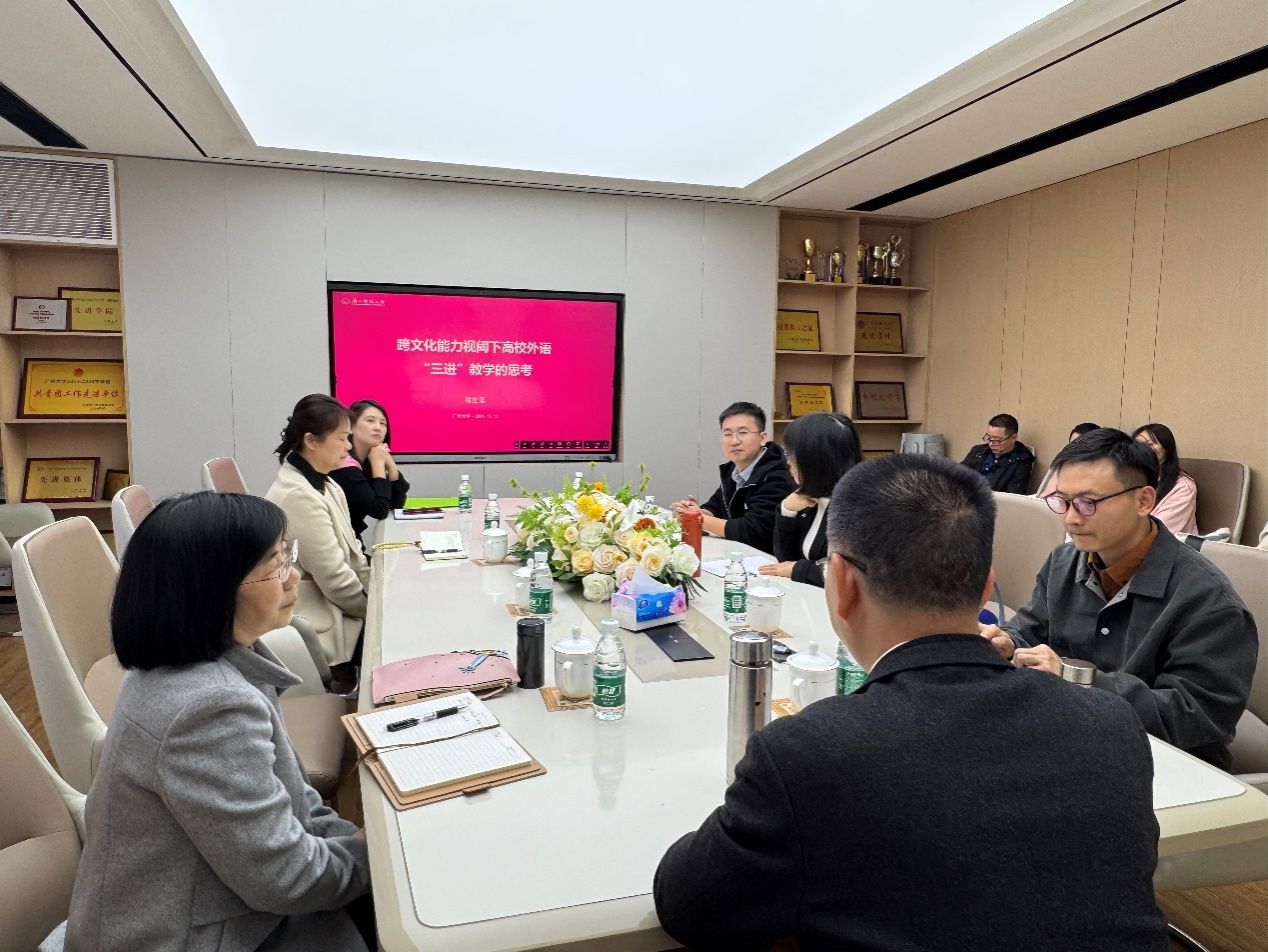 12月12日下午14点-16点,广西师范大学的谢世坚教授应邀到我院开展题为“跨文化能力视阈下的高校外语‘三进’教学的思考”的讲座。讲座由我院副院长彭念凡教授主持,院长王晋军教授以及多位系部骨干教师参加了讲座。