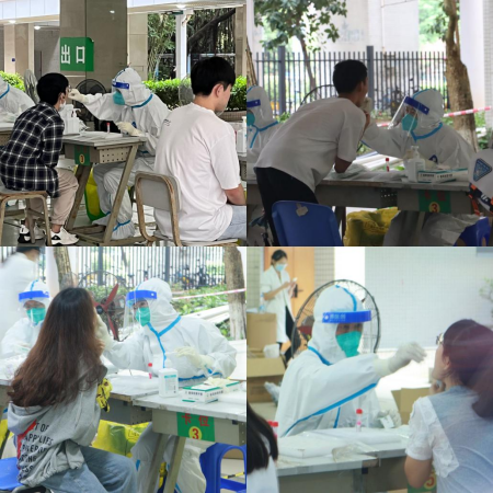 图:周生辉、尹波、任莉、彭念凡老师为学生检测核酸
