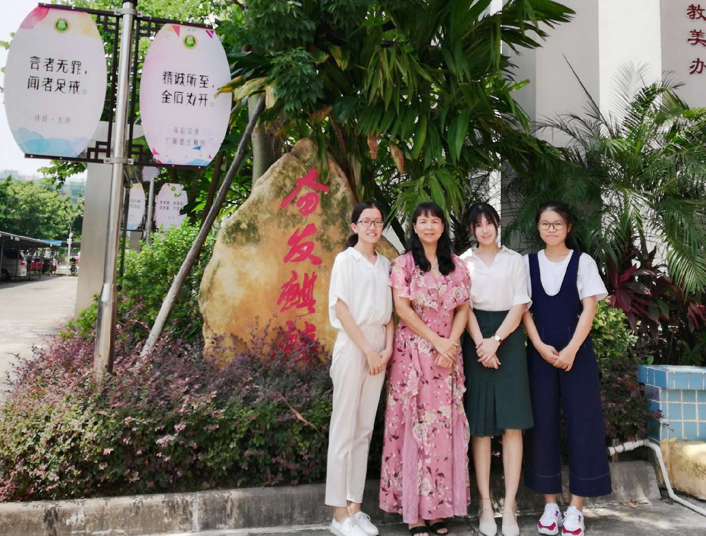 作为一名优秀毕业生,怀着一腔献身教育事业的忠贞和热情,当年师姐放弃了留在广州任教的机会,毅然选择了回到母校南沙中学任教。“99年的南沙,发展还是比较落后,当时我的选择就好像是绿叶对根的情意一样,我要尽我所能,像一片绿叶一样踏踏实实、勤勤恳恳地付出,将一片赤诚的爱心献给我事业的根——教育。多年来,我用自己的拳拳之心和绵薄之力,为学生送去知识的琼浆玉液。 回顾这20年,完全没有后悔当初的选择”。师姐坦言,参加工作以来也曾遇到一些困惑,但在领导、同事的支持、理解、信任和帮助下,自己一步一个脚印走过来了。“年轻人受点委屈是一种磨练,多干一点又是一种锻炼”。师姐工作成绩斐然,从班主任、科组长到主任,教育局教育科干部再到副校长,岗位升迁了,能力也在提升,不变的依然是对待工作的恪尽职守。师姐提到自己曾借调到区教育局工作的经历,那时她负责教育科的德育工作,正值创文活动开展之际,需要提交大量的材料,时间紧,任务重,师姐曾经独自一人默默地加班到凌晨三四点。在日常工作中,师姐经常向前辈虚心请教,同时师姐还强调大学专业知识过硬对工作顺利开展的重要性,不要太计较工作中的得失,不要怕吃亏,因为吃亏是一种福气。师姐踏实工作,淡泊名利,从不向领导邀功,但是金子就会发光。领导欣赏她的踏实肯干,任劳任怨,一再提拔重用。师姐说自己的工作一路带点小幸运,笔者却认为,成功的背后是师姐的能力和人格魅力在“施法”。