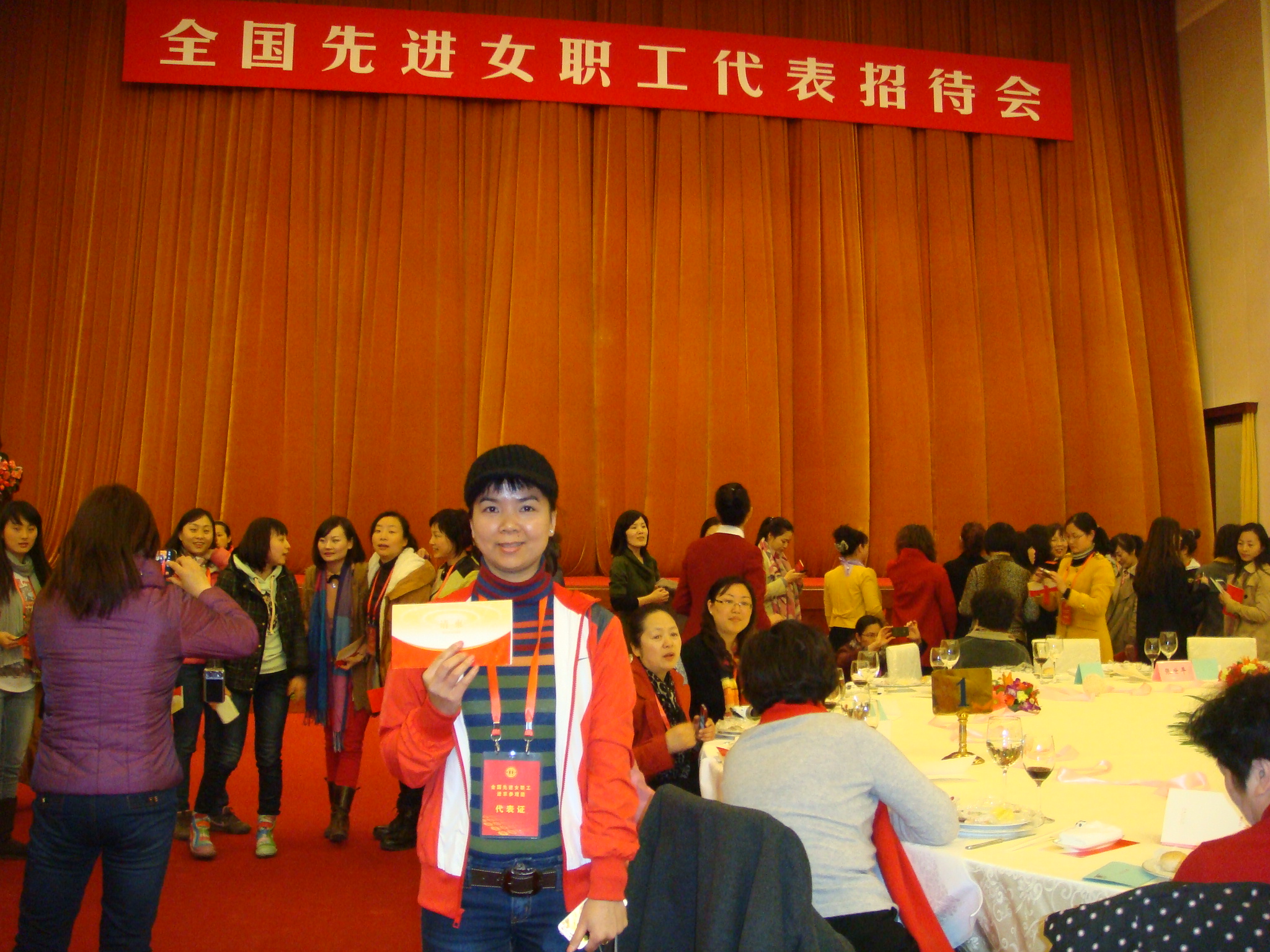 (2013年朱党育师姐作为全国先进女职工代表到中央人民大会堂参加会议)