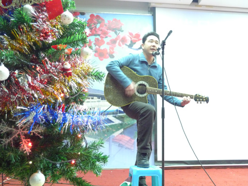 法语小组筹办的圣诞晚会于图书馆副楼讲学厅隆重举行。我院肖坤学院长、党委周海兵书记、覃鸿怀副院长、学工办逄淑军、曾祥薇、廖晓娴老师、法语系邹琰主任、冯雪飞、郑晓萍老师以及外教Frédéric和Armel老师出席了本次晚会。