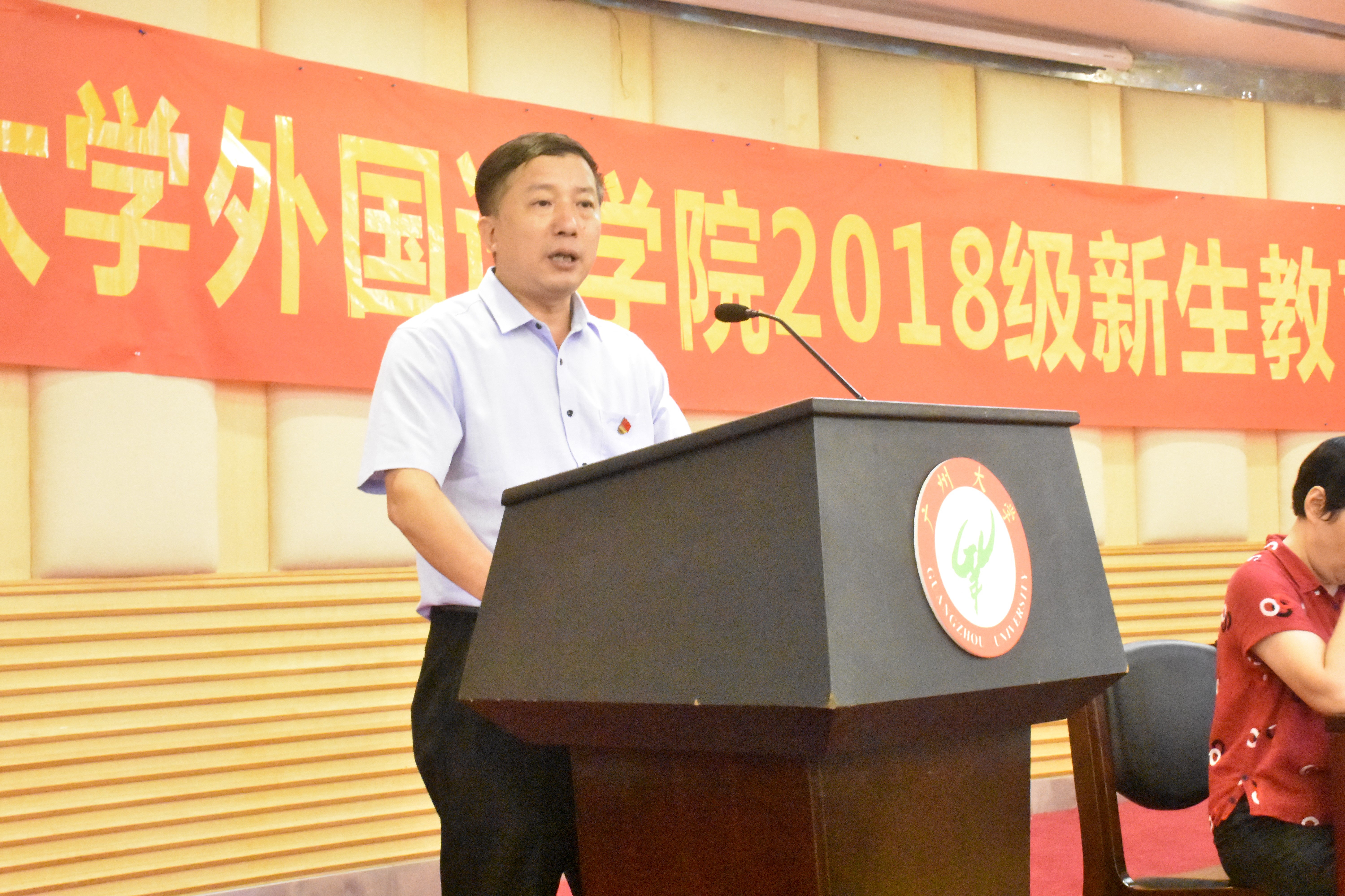 肖坤学院长对18级新生表示热烈欢迎,并从学院的办学历史、教学与管理机构、师资队伍、专业与学科建设、教学与科研等各个方面介绍了我院概况,同时希望18级新生能在大学期间树立远大理想,并为此不懈努力,在老师的引导下向善向美、提高自身的素质。