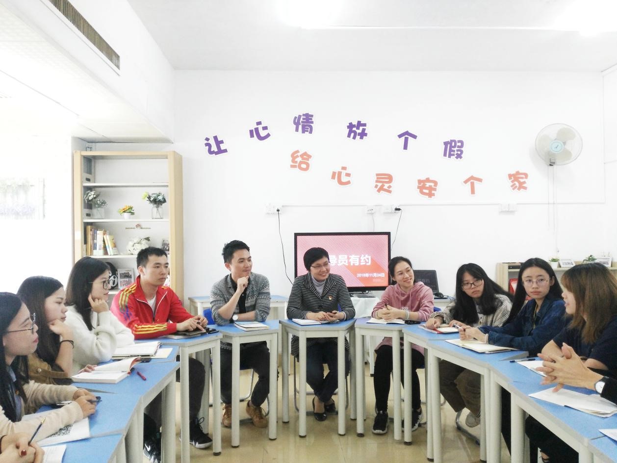 新一期的“辅导员有约”活动在B10五室一站心情驿站举行。学院党委鄢智青副书记、学工办主任任洪蔚老师、辅导员黄顺婷、陈远明老师及各兼职辅导员参加了本次活动。