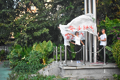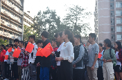 在激昂雄壮的国歌声中鲜艳的五星红旗冉冉升起,全体师生面向国旗,肃立注目,表达着无限的敬意。随后,伴随着“云山珠水,羊城堂皇”的响起,全体师生齐唱校歌,升起校旗。