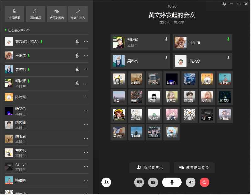 各班团干主动带领同学们做好在线学习的各项准备工作,认真学习企业微信、雨课堂等平台的使用指引。严格遵守在线学习期间的各项纪律要求,通过在线学习考勤管理等渠道,及时掌握学生思想、学习等状况,以便及时向班主任、辅导员反馈。