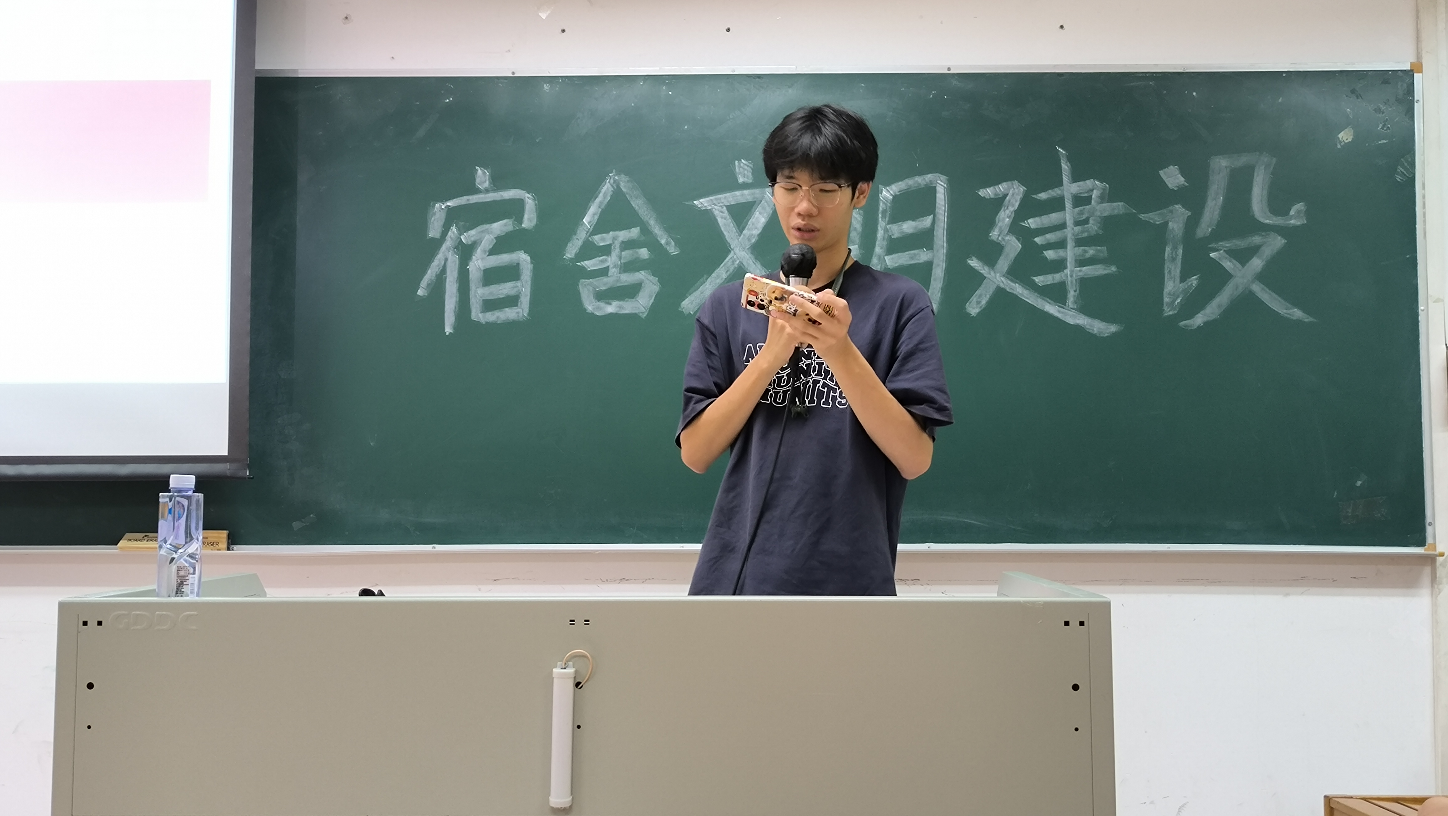 会议期间,年级生活委员刘懋坤同学为大家详细讲解了宿舍文明建设要求。他从“宿舍宿位相关”“日常行为规范”“违规违纪行为”三大方面进行详细讲解,明确了宿位调整以及走读申请相关的纪律,详细解读了西瓜视频