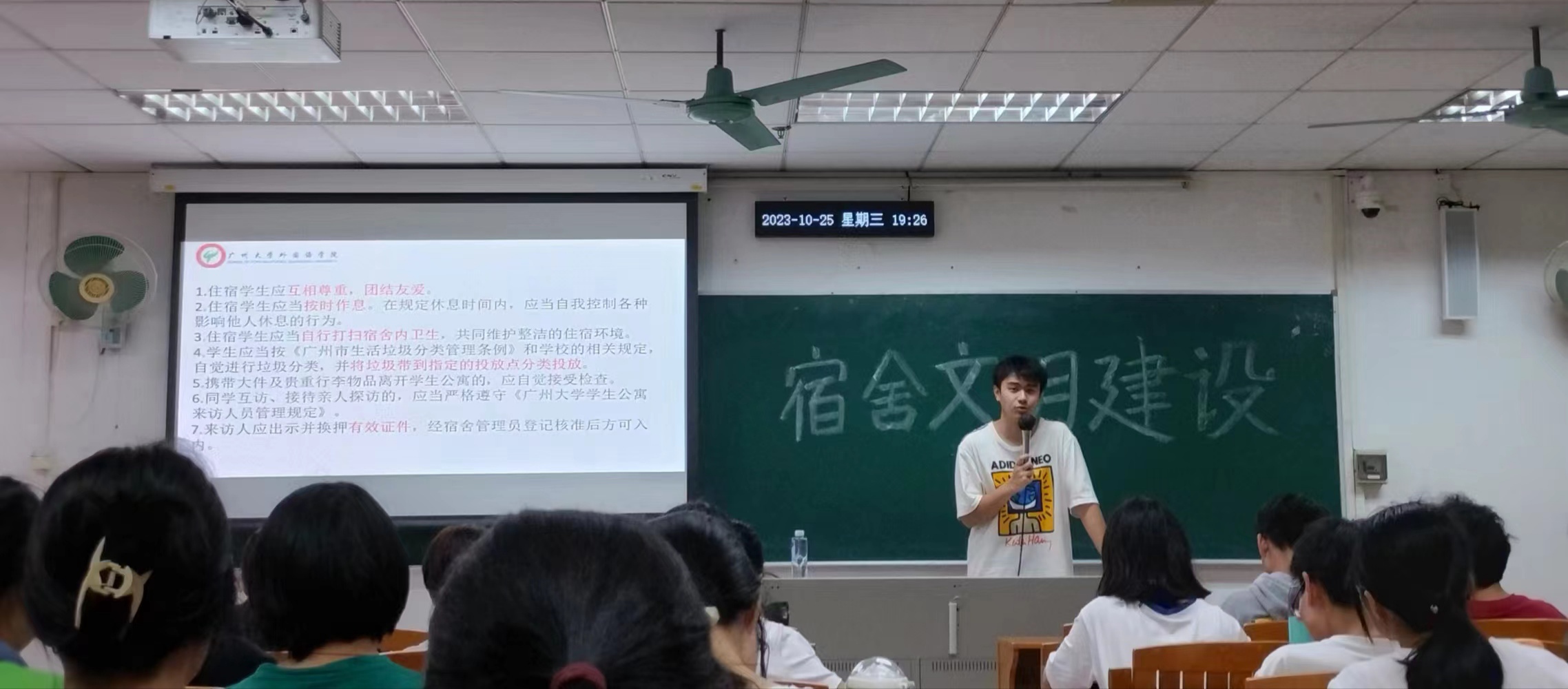 于10月25日晚上7点在桂花岗校区5号楼召开了本学期第一次宿舍文明建设会议。本次会议由年级生委刘懋坤同学主持,西瓜视频