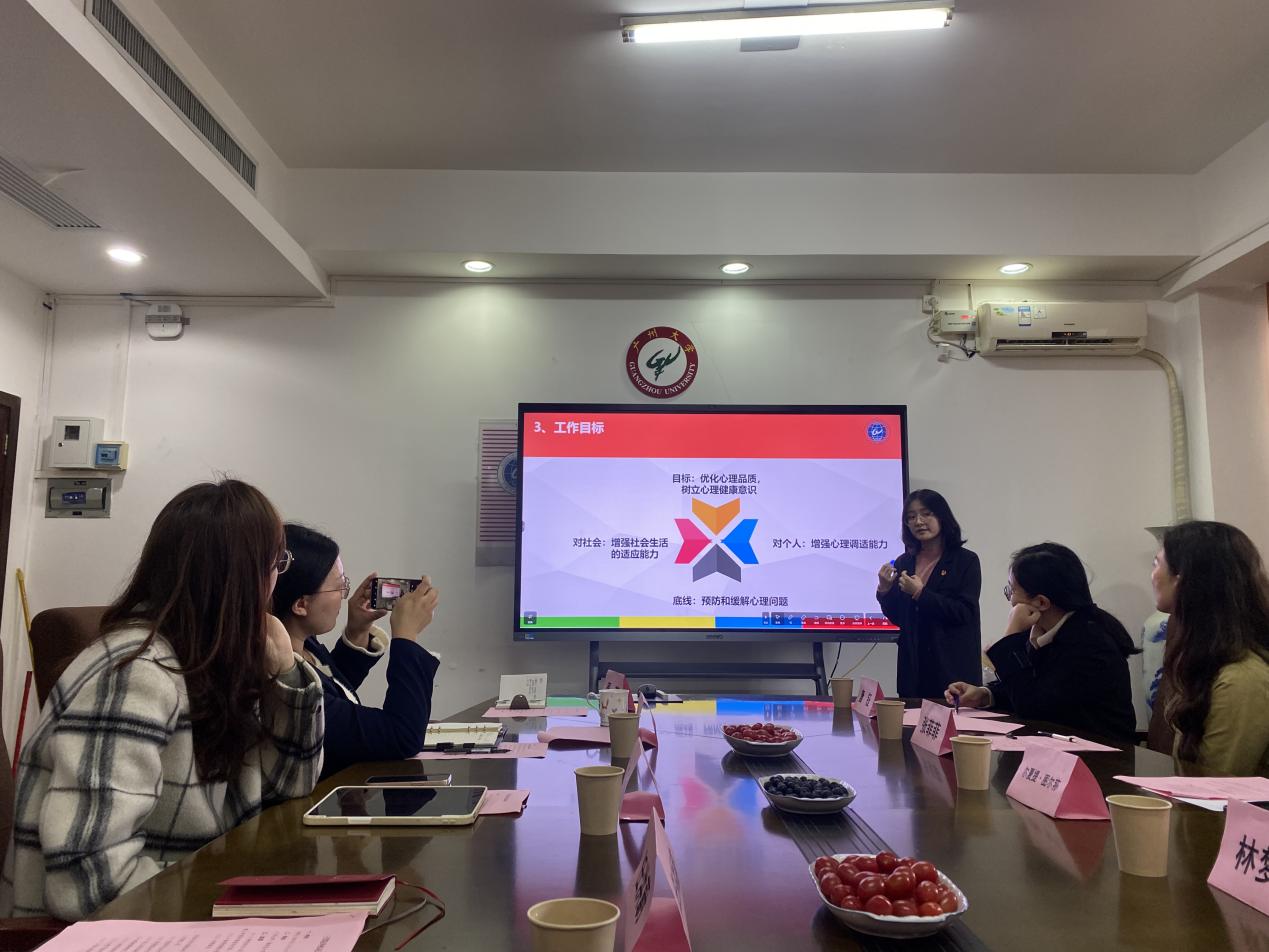 座谈会上,许多恬副书记首先欢迎德风书院一行莅临我院交流,希望两院借此机会增进有益联系,互通宝贵经验,共同推进学生工作品质的提升。随后,柳叶老师介绍了我院学生党建工作的品牌活动及亮点。学院凝练专业特点,打造育人品牌,依托“五室一站”开展“党建+外语”党性教育“一支部一特色”品牌活动。德风书院以申报精品项目为例,介绍了多学院联合开展“五系列”(“学”系列、“旅”系列、“赛”系列、“践”系列、“影”系列)党员教育工作模式及有益做法。周莹老师介绍了我院学生心理健康教育工作情况,致力于完善四级工作网络体系,全面提升心理育人质量。德风书院介绍了环心工作室在大学生心理健康教育方面的系列工作经验。交流环节,双方还就朋辈学生讲党课、多学院联合开展党员教育工作模式、线上党员教育以及二级心理辅导站建设等方面展开讨论。