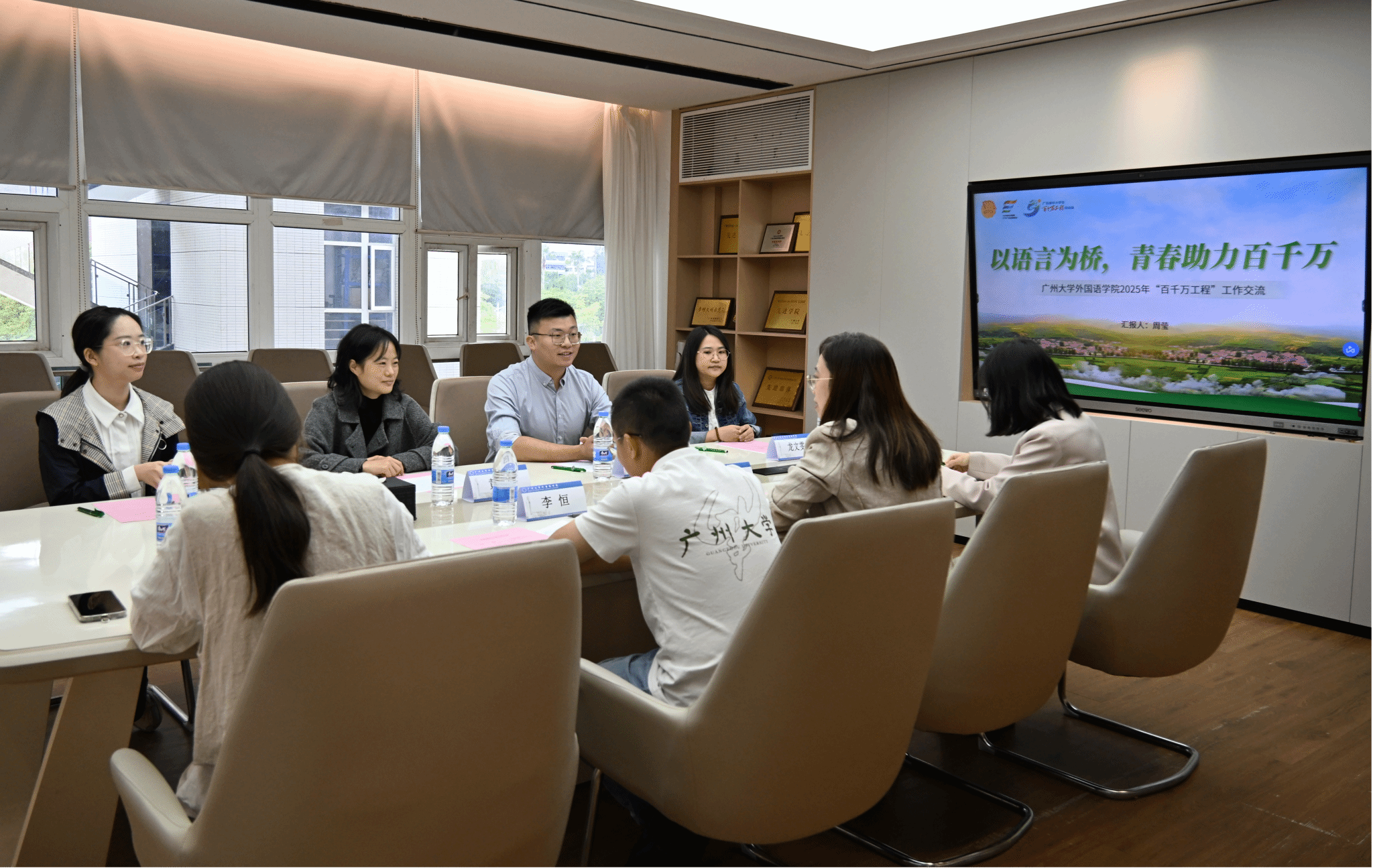 与英德市“双百行动”的对接情况,指出学校已组建多支跨学科“百千万工程”突击队,助力英德在产业发展、基层治理和文化建设等方面的发展,希望引导更多青年学子将课堂所学应用于南粤大地,在服务高质量发展的实践中“受教育、长才干、作贡献”。学院党委副书记许多恬介绍了师生依托专业优势开展的系列社会服务项目,重点分享了AI赋能中小学教学的教研案例,并表示希望以此为契机,探索与英德市中小学的合作路径,切实以学院之力服务地方教育发展所需。