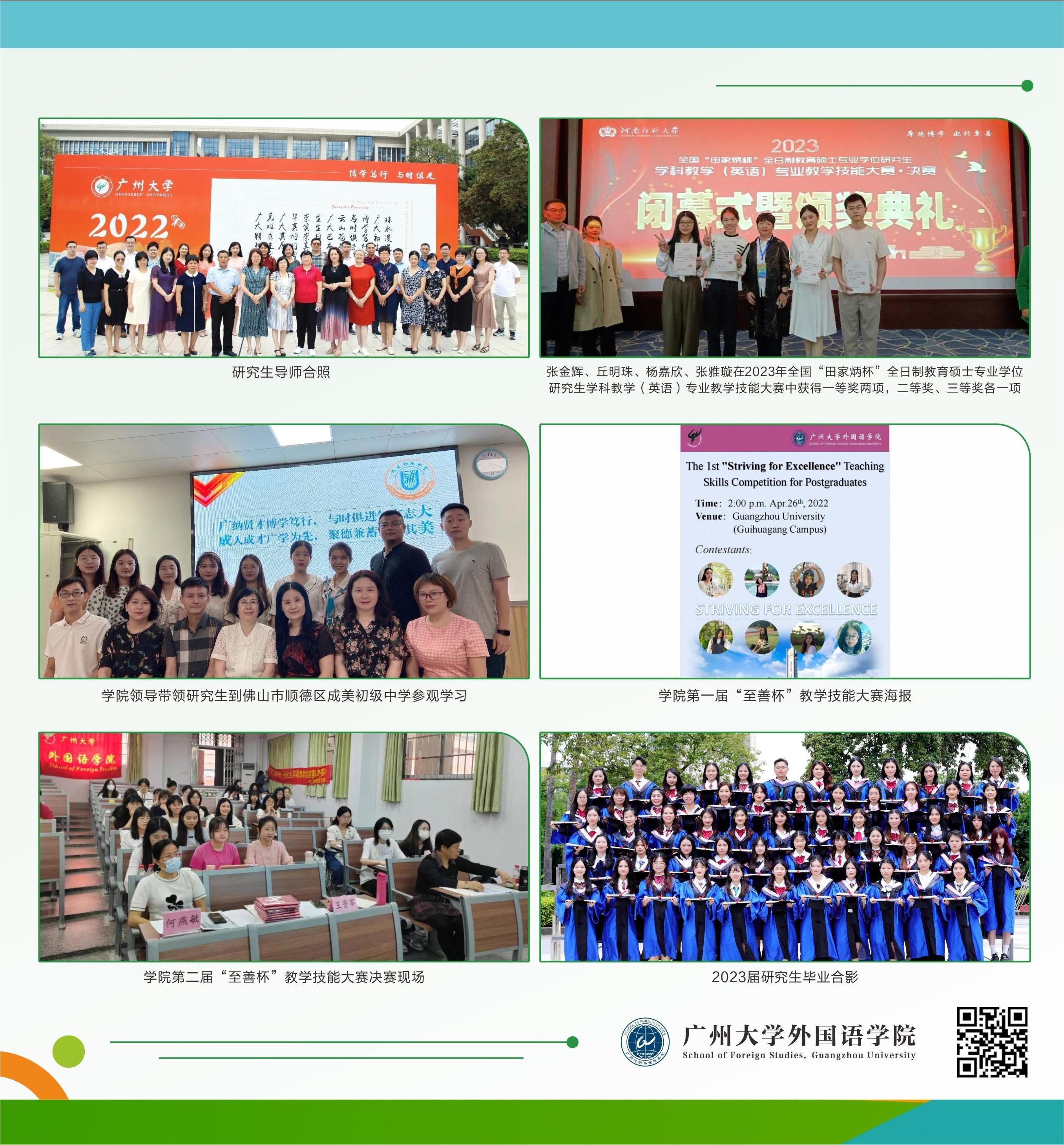 专业学位教育硕士(学科教学·英语)现有导师63人,其中校内导师42人(教授9人),校外导师21人(均具有高级专业技术职称)。校内导师均为学院的科研和教学骨干,校外导师来自广东省教育科学研究院、广州市教育科学研究院以及广州、深圳、珠海、佛山等市教育局教研室与珠三角地区的省市重点中学。近年来,本硕士点导师承担各级教学、科研课题60余项,其中省部级课题30余项、市级课题近30项,获得省、市级科研奖励15项;公开出版学术专著、译著、教材40余部,公开发表学术论文200余篇。