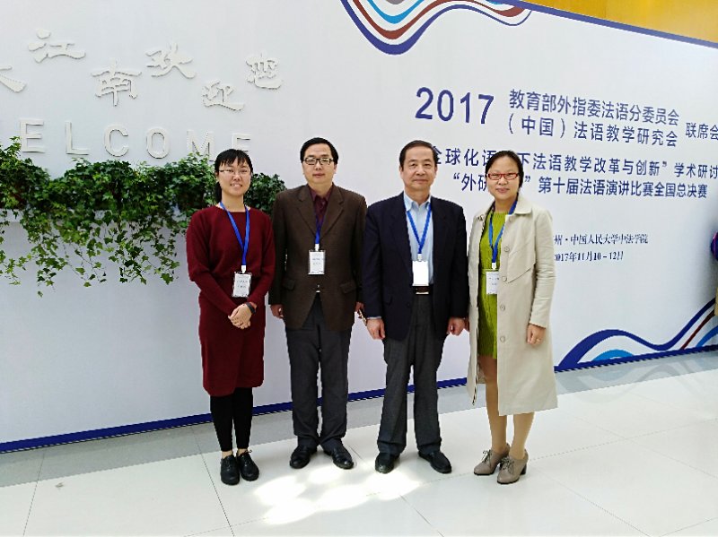 11月10日至12日,我院西语系主任邹琰老师和法语专业卢秋燕老师参加了在中国人民大学中法学院举行的2017年全国高校法语年会。此次年会包括2017教育部外指委法语分委员会、(中国)法语教学研究会联席会议、“全球化语境下法语教学改革与创新”学术研讨会、“外研社杯”第十届法语演讲比赛全国总决赛等多项重要活动。