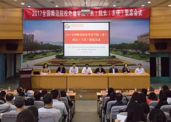 参加“2017全国师范院校外语学院(系)院长(主任)联席会议“。此次会议在浙江师范大学外语学院报告厅举行, 在简短的开幕式后,洪岗、叶兴国、袁筱一、刘承宇、曹进、吴岩和洪明七位业内知名教授/院长分别以“基于国际视野的APP卓越英语教师培养项目”、“外语教师面临的新形势和新问题”、“建设特色鲜明的多专业外语学科”、“高师外语专业卓越教师‘四全’培养模式理论与实践探索——以西南大学为例”、“师范院校英语专业立体化实践教学模式探索”、“全球化背景下的外语院校英语教育专业创新培养模式的实践与探索—以广东外语外贸大学为例”和“卓越英语师范人才‘三融’培养模式探索”为题,做了主旨报告。本次会议围绕“新时代的卓越外语教师培养”主题,探讨当下新形势下卓越外语教师培养、“互联网+”教育时代的师范外语人才培养改革、新高考背景下师范类院校外语专业人才培养改革等议题。会议内容对我院在未来几年内英语教师教育专业的发展将具有积极的指导意义。