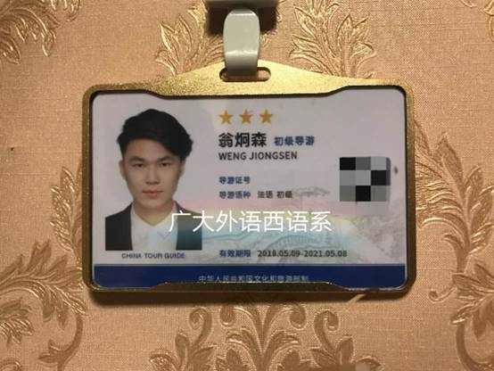 翁炯森同学将自己考取“法语导游资格证”的经验总结分享给师弟师妹(具体请见微信公众号“广大外院法语圈”),希望对有意从事旅游业,以及对导游行业感兴趣的师弟师妹有所帮助。