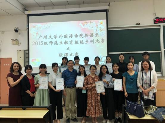 6月5号下午,我院在文新113举办了师范生授课比赛。出席本次活动的领导分别肖坤学院长、苏远连副院长、英语系李桔元书记和胡安奇副主任、学工办李黎主任。英语(教师教育)教研室五位专业教师以及执信中学英语科科组长林佩华老师担任比赛评委。