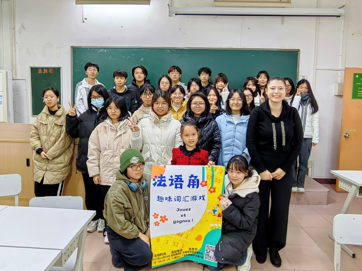 12月19日下午两点,我院西语系法语专业在桂花岗校区5号楼南201成功举办法语角活动。本次活动由外教Anne-Flore Vrac老师主持,法语专业23级学生参与。
