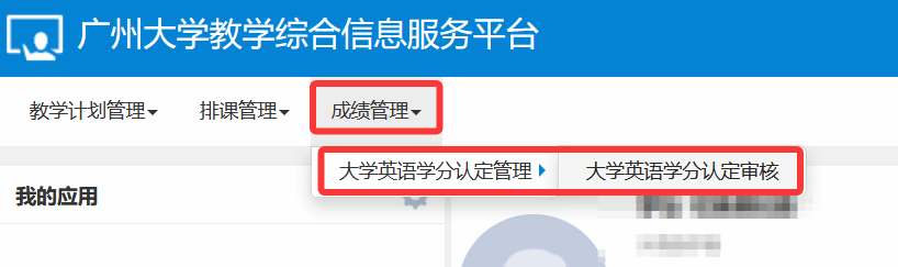 按“成绩管理”-》“大学英语学分认定管理”-》“大学英语学分认定审核”操作。