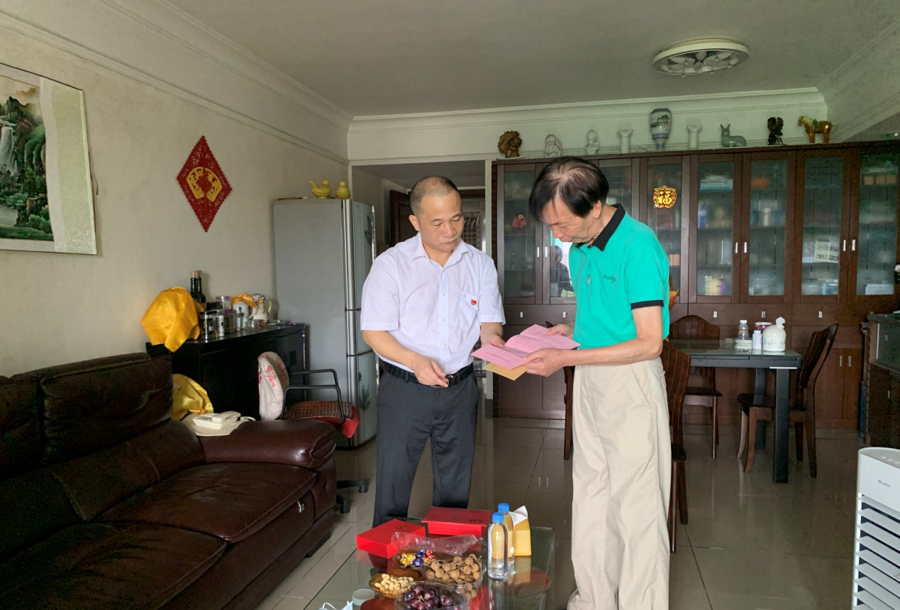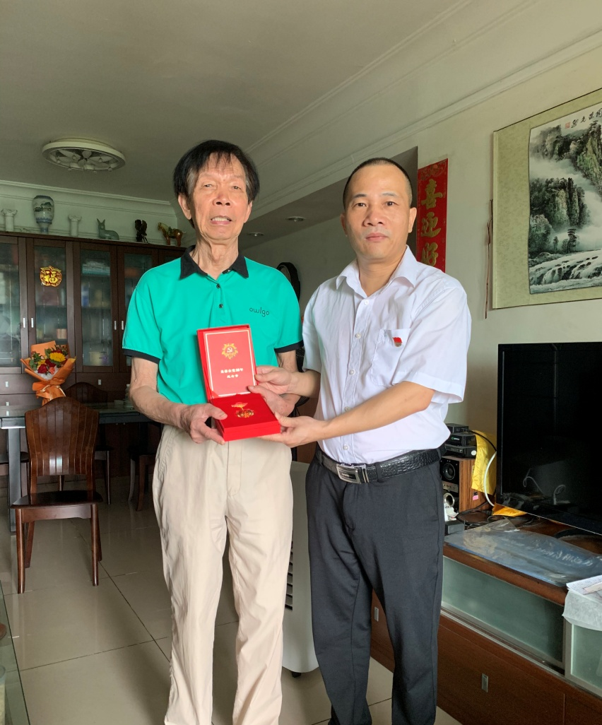 在党的百年华诞之际,学校采取集中与分散相结合的方式发放“光荣在党50年”纪念章,将以习近平同志为核心的党中央的关怀和温暖送到老党员的心坎上。我院党委书记李暖均于6月30日上午走访慰问老党员彭兆春同志,为他颁发“光荣在党50年”纪念章,并代表学校、学院向他致以崇高的敬意和衷心的感谢。