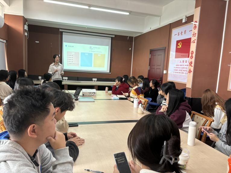 关于创新创业类竞赛,党员陈思莹同志详细解读了中国国际大学生创新大赛等赛事。她强调队伍组建的重要性,无论是初创项目还是已成型项目,都要注重团队协作与个人特长发挥。同时,她还分享了项目选题的技巧,要结合前沿热点与专业特色,以小切口展现创新性。