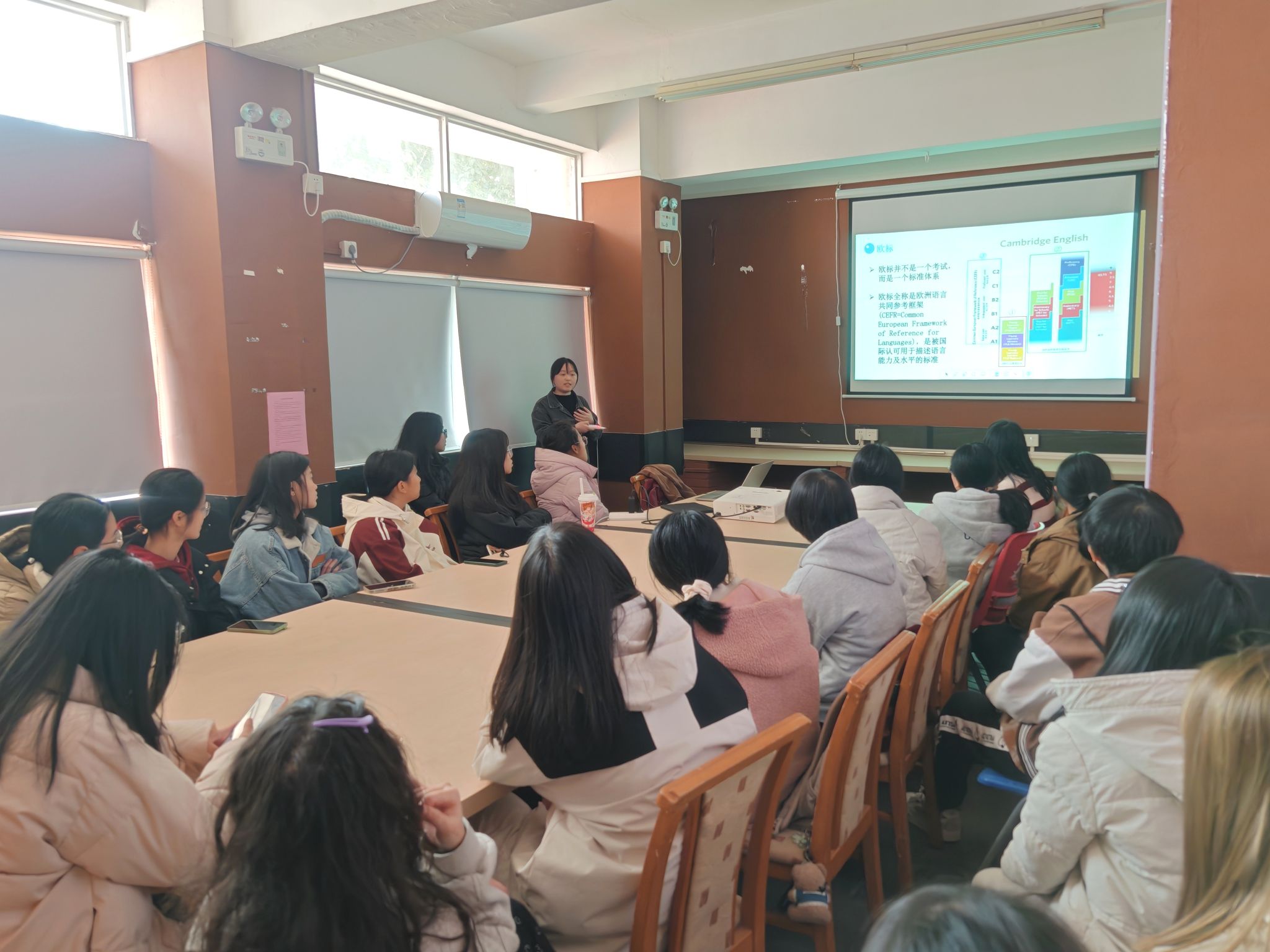 关于KET和PET教学经验方面,党员赵韵宜同志以“KET与PET讲台上的成长:我的教学之旅与启示”为主题,为同学们带来了一场生动实用的分享。她首先详细介绍了KET和PET考试的基本信息,包括考试目的、针对群体、题型分数、参考教材、资料搜寻渠道等,让同学们对这两个考试有了较为全面的了解。随后,赵韵宜同志分享了自身的教学成长之路和教学启示,她提到真诚沟通是架起与学生、家长、领导之间信任的桥梁,而专业能力则是她从容应对挑战的底气。她在教学中灵活运用多种教学方法,如讲授法、阅读圈模式、小组讨论等,并有机融入积分制,让课堂焕发活力,她也强调课堂上的幽默感同样十分重要,能为教学增添些许乐趣。因此,要成为一名优秀的教师,不仅需要具备过硬的专业实力,还需要掌握得当的教学方法,注重课堂管理,并时刻保持真诚用心的沟通态度。这些都是教学中不可或缺的要素,也是同学们未来在学科实践或职业生涯中需要不断学习和提升的重要能力。