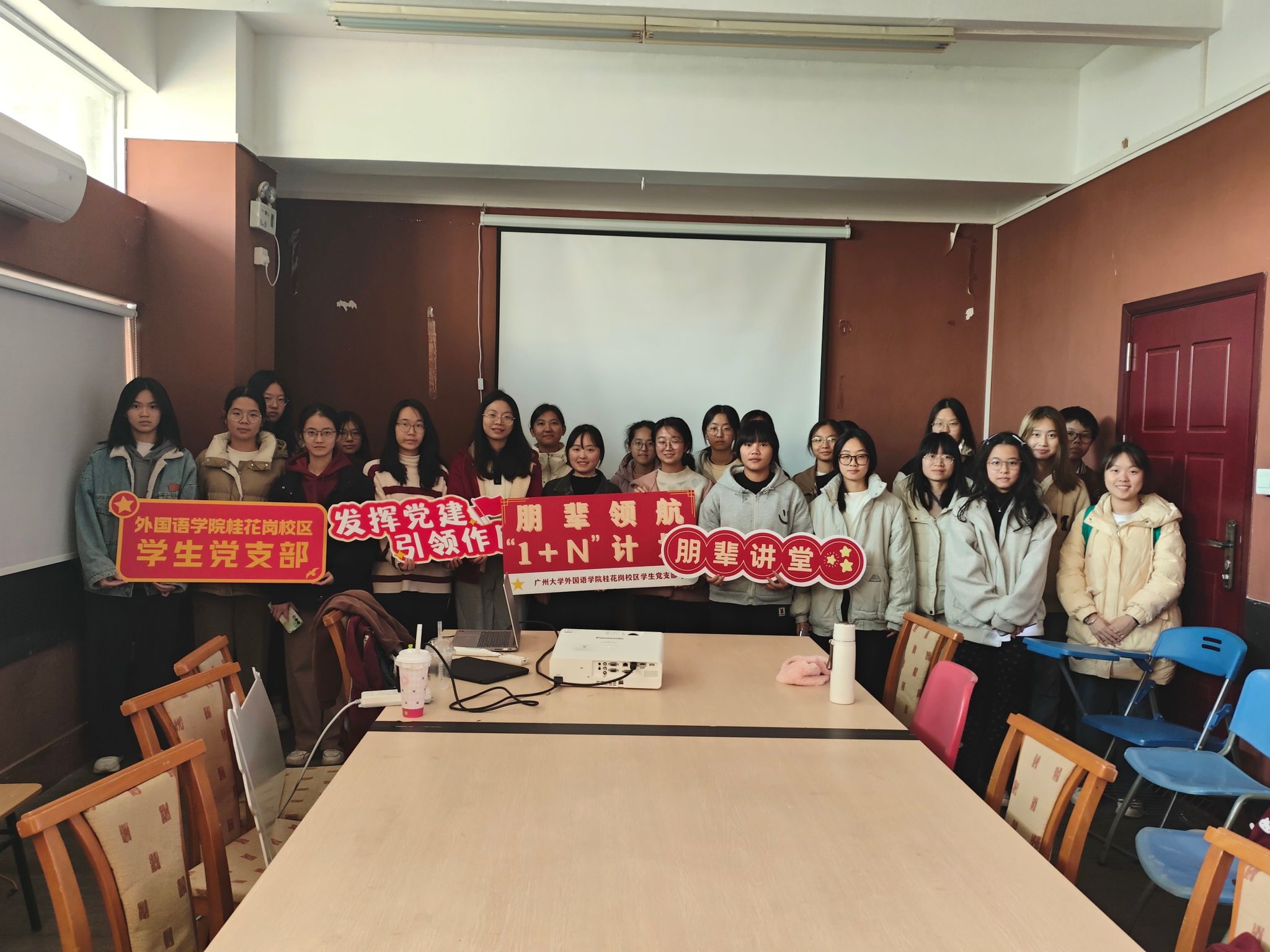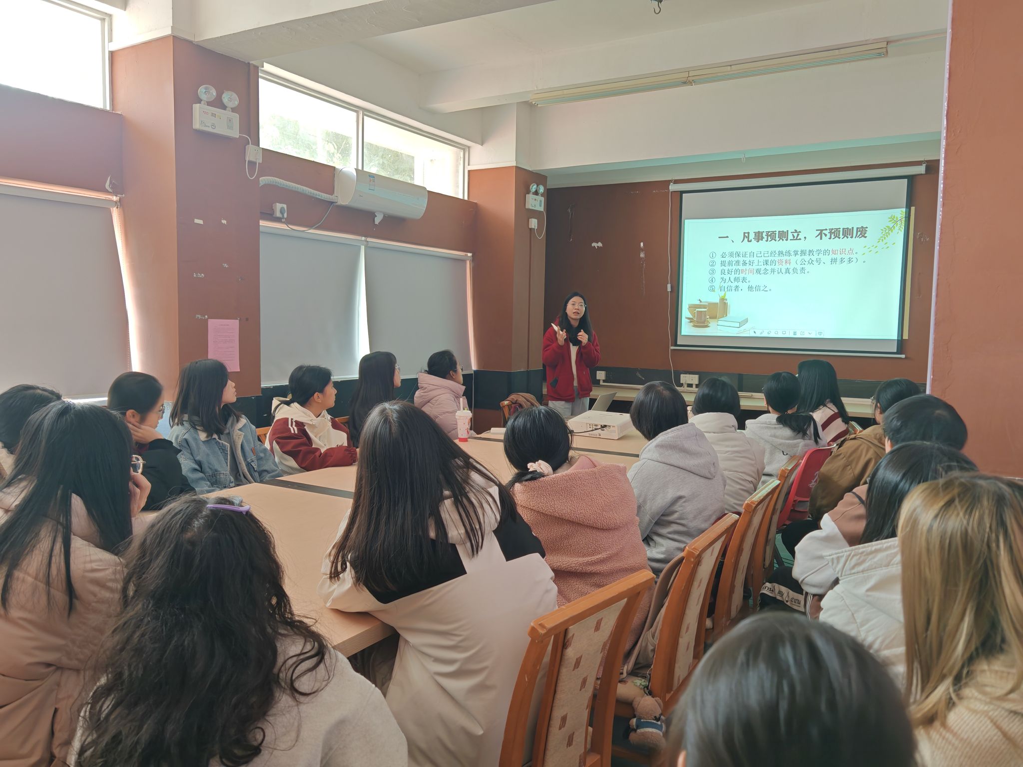 桂花岗校区学生党支部特色品牌活动“朋辈讲堂”第三期于12月20日在桂花岗校区3号楼420室开展,党支部学科教学(英语)研究生党员黄林燕、赵韵宜受邀面向学院2024级本科生作“学科实践修炼,经验交流共享”为主题的分享会。