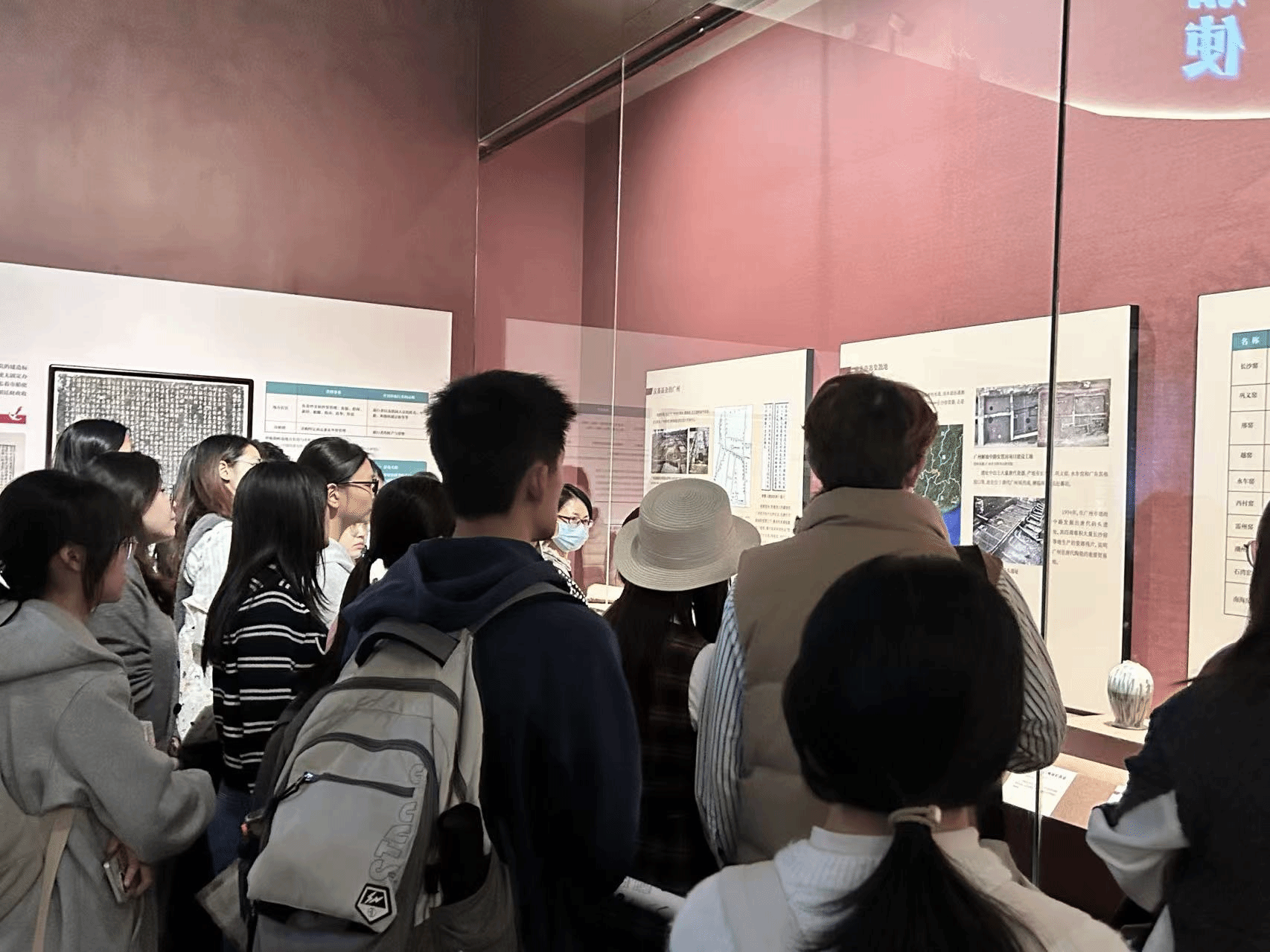 在讲解员的带领下,师生沿着历史的时间轴线,依次参观了汉代海上丝绸之路文物、明清外销瓷器精品、近现代中外交流实物以及广交会发展历程等展区。玻璃器、珐琅彩瓷等珍贵展品,辅以详实的历史文献,生动再现了广州作为中国对外贸易重要窗口的辉煌历程,也集中体现了“十四五”期间我国在推动共建“一带一路”高质量发展中取得的丰硕成果。