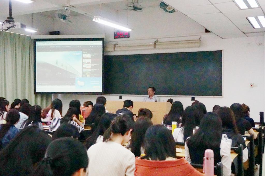 3月28日上午,我院院长肖坤学教授在文新320课室为英语专业本科生和研究生共60余人讲授题为《新时代新思想新气象新作为》的新学期思政第一课。
