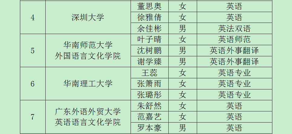 2013年“蓝鸽杯”英语口译大赛决赛名单