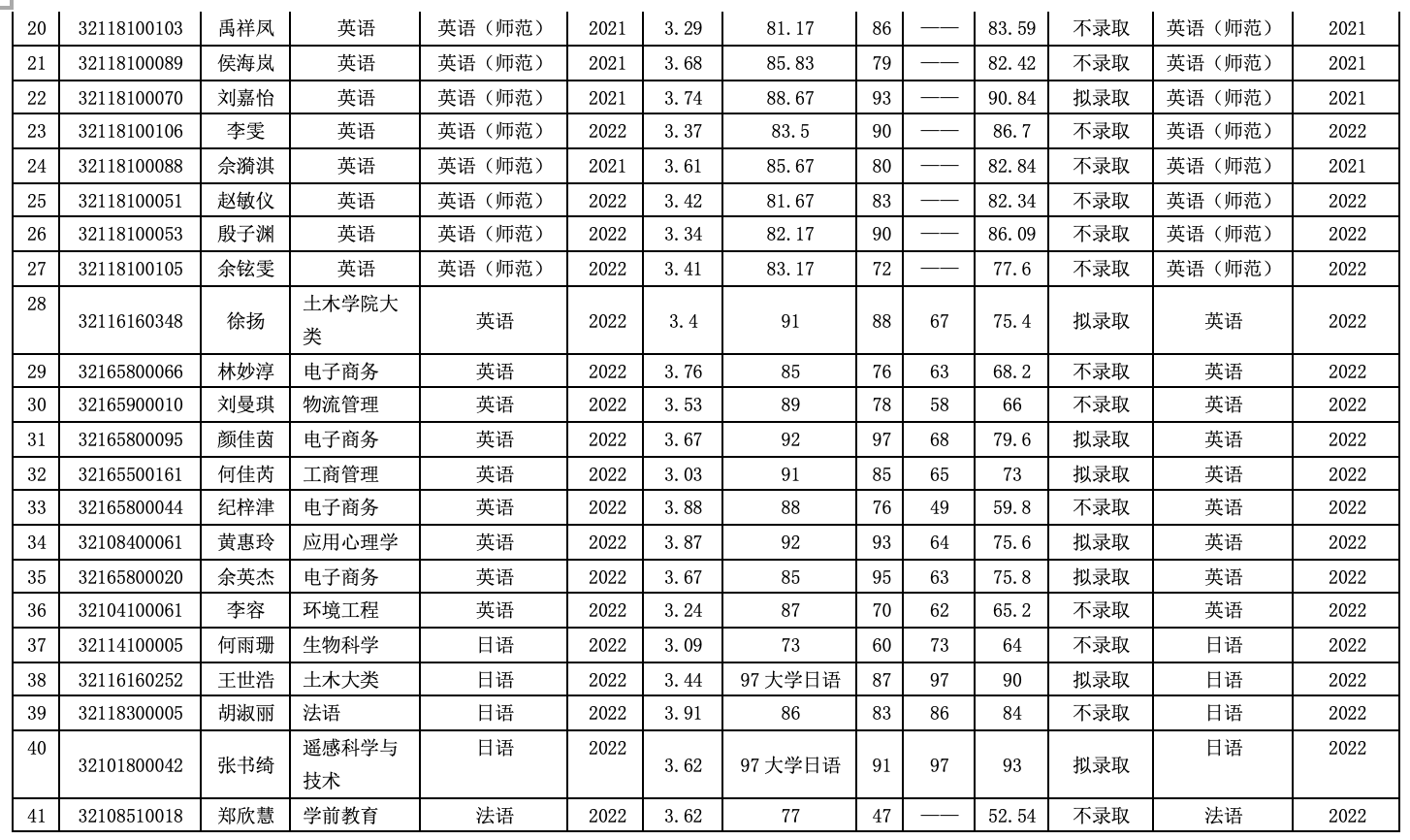 附:2021-2022学年第二学期转专业考核成绩及拟录取名单