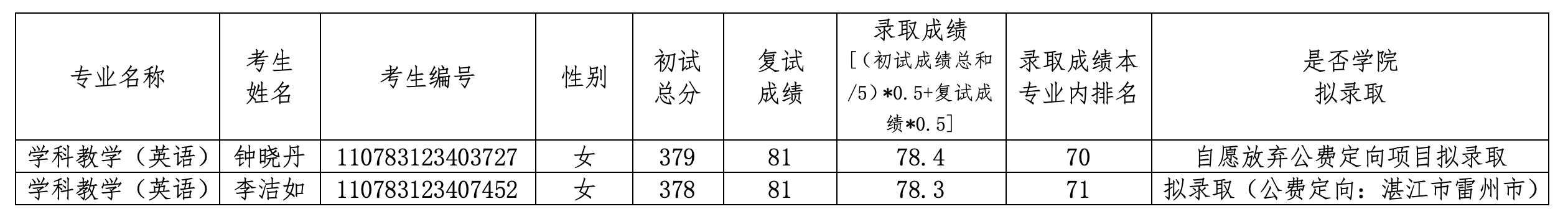 西瓜视频 2023年硕士研究生复试结果公布表(补录)