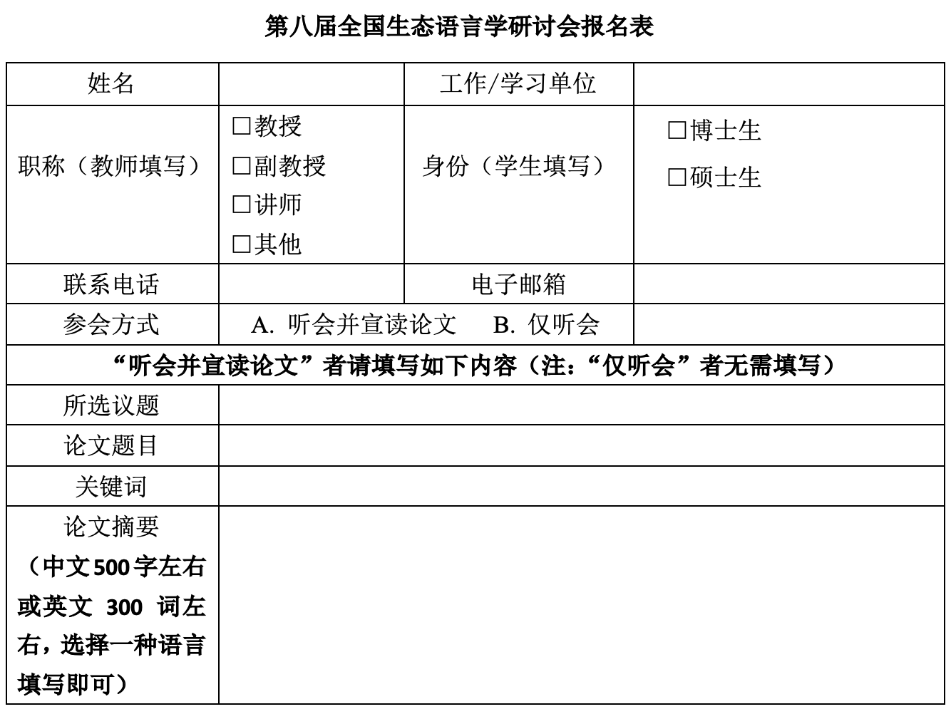 (4)宣读论文要求:聚焦会议议题,中文摘要500字左右,英文摘要300词左右。请报名者按照文后表格进行填写。