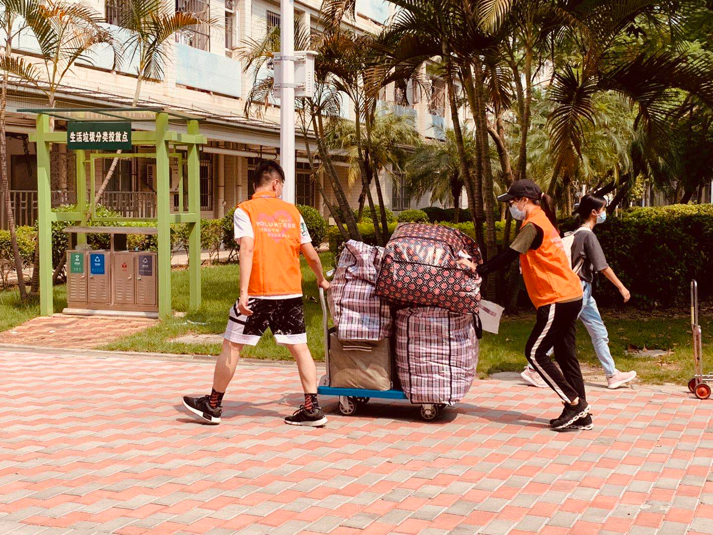 9月2日下午,外院志愿者早早在大学城广大路集合等候,等待着2019级同学们的到来。车辆到达后,在辅导员的指引下,同学们和志愿者们齐心协力,有序、高效地将行李搬到宿舍楼下,确保每位同学的行李都能顺利到达指定位置。炎炎夏日下,19级同学有序领取学校派发的矿泉水、凉茶等消暑物资,及时补充水分和能量。搬迁工作持续了近4小时,在外院师生的通力合作之下,顺利完成了西瓜视频