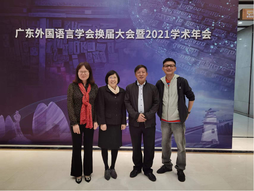 【本院讯】2021年12月10-12日,广东外国语言学会换届大会暨2021年年会在广东珠海市召开,承办方为中山大学国际翻译学院。王晋军院长、苏远连副院长、彭念凡副院长、肖坤学教授一行四人代表我校参与了此次会议。我院院长王晋军教授当选为广东外国语言学会副会长,副院长彭念凡副教授为学会理事,肖坤学教授为学会监事。