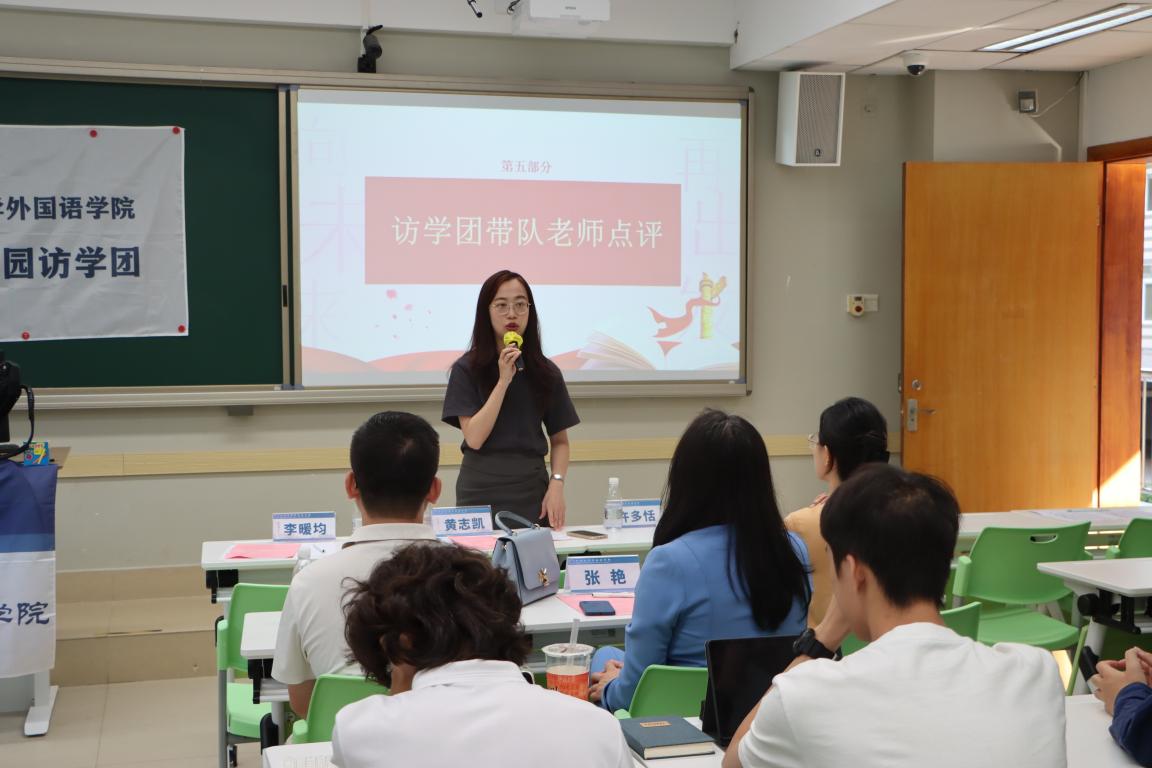 学院党委副书记许多恬、英语系副主任王希腾及翻译教研室副教授张艳等访学带队教师,对学生思考深入、总结全面的汇报情况表示赞许,勉励同学们后续要在前期访学的基础之上,进一步梳理访学收获,融入个人学习科研及职业规划用于滋养个人成长