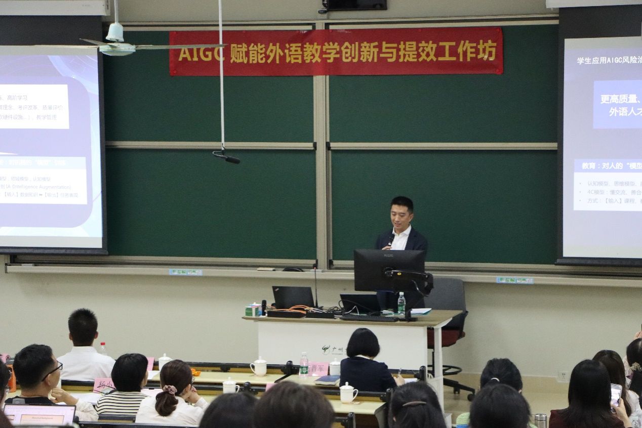 联合举办“AIGC 赋能外语教学创新与提效”工作坊。此次工作坊围绕AIGC、多模态信息技术、虚拟现实/虚拟仿真等前沿技术在外语教学中的作用,深入推进教师数字素养研训学习,助力我院教师充分利用数字前沿技术,特别是人工智能技术,更好地开展教学、科研工作。