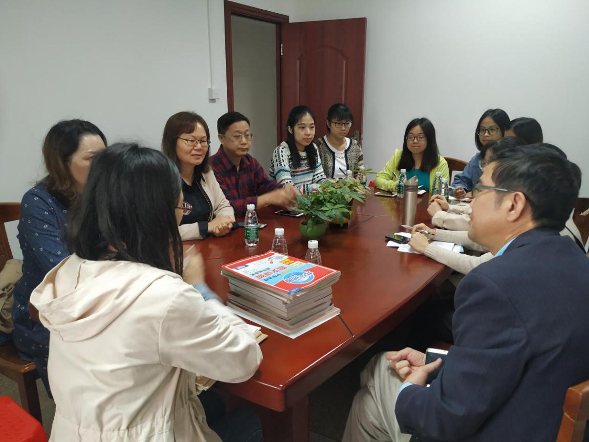 上午9时,支教巡查工作会议在大龙中学小会议室进行。邓正光副校长、我院三位老师与英语、思政、语文和历史专业的9名支教实习生参加了会议。首先,邓正光副校长简单介绍本学期支教工作的基本情况,并对广大支教学生给予肯定,赞扬本支教分队是近年素质最高的一支分队。随后,分队队长钟梦婷同学对支教工作进行汇报,她指出前期和中期的工作开展得都很顺利,这不仅要感谢邓副校长和叶主任在生活上的悉心安排,也要感谢每位支教生尽心尽责的工作态度。指导老师细心耐心的指导让支教生感到温暖,支教生不怕吃苦、积极主动的工作热情也受到了各位指导老师以及领导的大力肯定和表扬。苏远连副院长对大龙中学表示了充分的感谢,希望同学们再接再厉虚心学习,圆满完成支教任务。