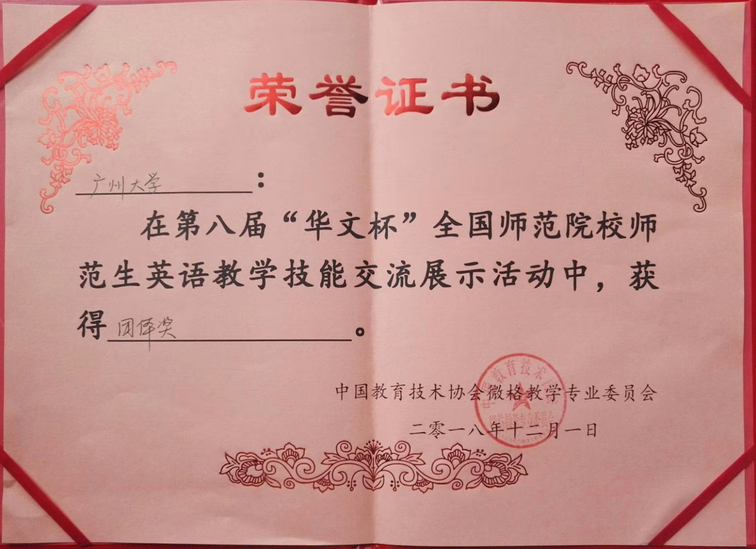 2018年12月1日,第八届“华文杯”全国师范院校师范生英语教学技能大赛在福建省漳州市隆重举行。全国共有58所高校共246名选手同台竞技。2015级英语(教师教育)专业五名同学在何爱晶教授的带领下参加了本次比赛。