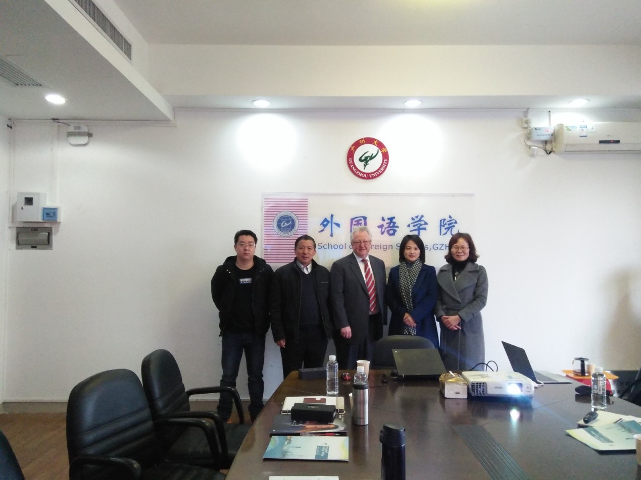 2019年1月3日下午,英国女王大学(Queen’s University Belfast)人文社会学院院长Michael Alcorn教授一行访问我院。肖坤学院长、苏远连副院长、胡安奇副主任同Michael Alcorn举行了会谈。双方简要介绍了各自学院的办学理念和人才培养情况,并就合作开展本科生“2+2”项目、硕士生交换生项目以及教师访学等问题深入交流。双方均表示要加强课程匹配和学分认证工作,推动两校开展进一步的交流与合作。