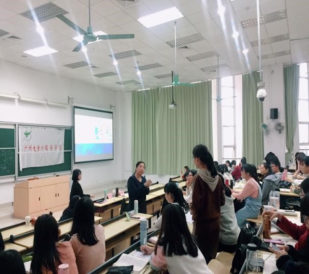 此次讲座由英语系副主任陈丽虹副教授主持,由现任广州六中英语科组长、广州市教育学会英语专委会常务理事、市高三英语中心组成员王慧珊老师和广东实验中学越秀学校英语教师、广州市“百千万人才培养工程”第三批名教师培养对象孙晶虹老师担任主讲人,讲座内容深入浅出。参加讲座的同学们认真聆听并积极参加问答环节。