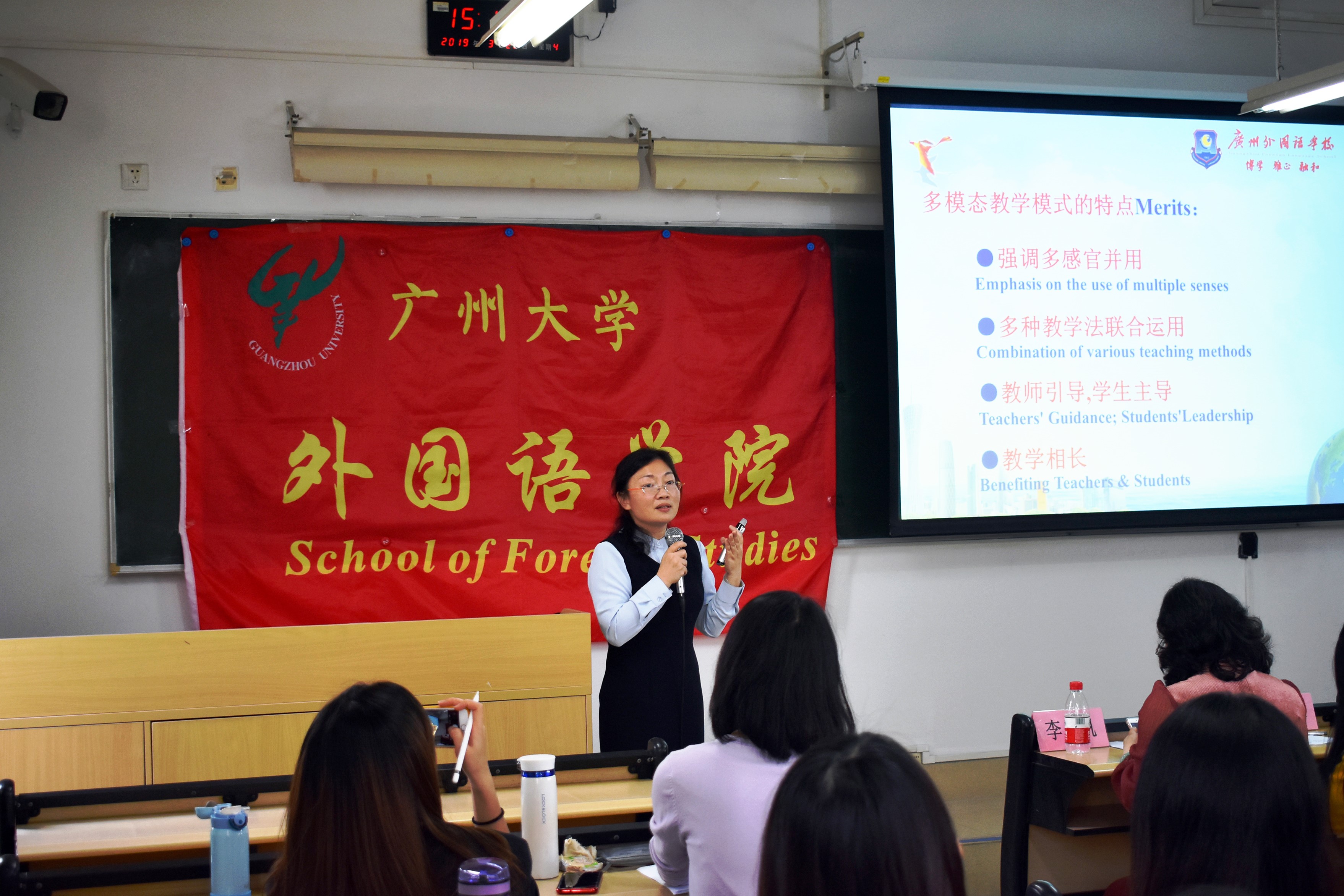 3月28日下午,我院“基础教育名家大讲坛”暨“基础教育名师面对面”第四场活动在文新524课室举行。该活动也是广州市基础教育系统新一轮“百千万人才培养工程”第三批中学名教师培养对象的示范带学活动,由学院副院长苏远连教授主持,英语系陈丽虹副主任、杨冬玲副教授与16级本科生、18级研究生出席了活动。