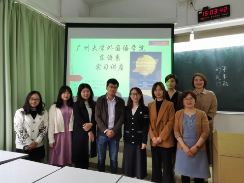 2021年3月23日下午,东语系在文新楼217教室针对18级专业实习召开了实习动员会,并邀请了广州市泰领翻译服务有限公司和快乐国际集团两个企业的相关负责人来校开展专业实习和就业指导讲座。活动由负责实习工作的徐淑丹副主任主持,苏远连副院长,彭英主任,东西语书记李莹莹、魏育芳、张新、欧丽贤等老师,翻译服务有限公司总经理陈果、快乐国际集团 陈莉斯经理等5名企业人士参加了活动。