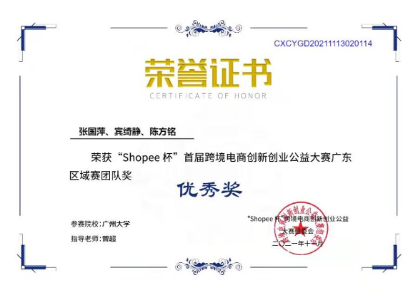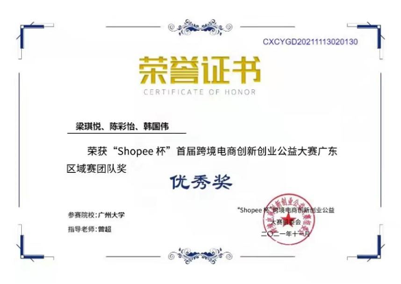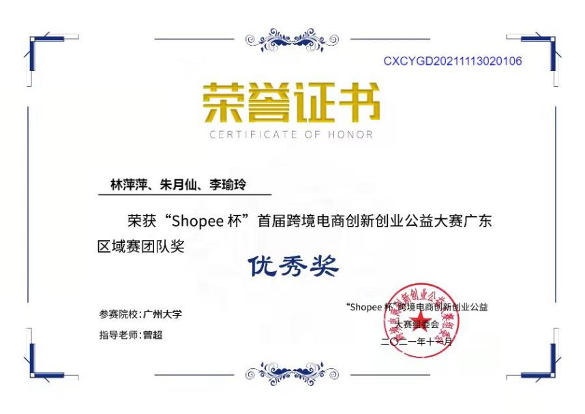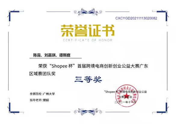 2021年11月13日,我院英语专业同学参加了 “Shopee杯”首届跨境电商创新创业大赛广东区域赛。经过与省内500多名参赛者的激烈角逐,我院的5支参赛队伍取得一个三等奖,四个优秀奖。