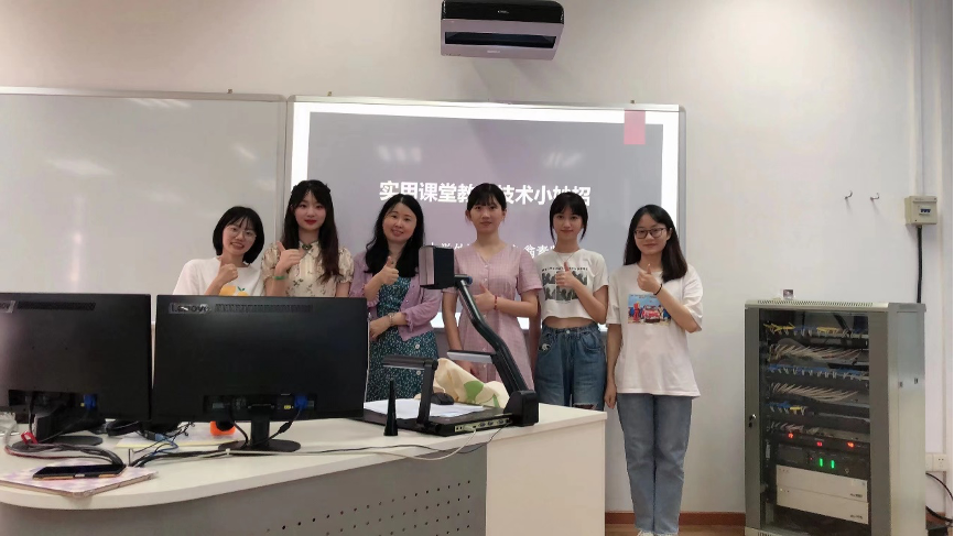 随着信息技术的发展,外语课堂中越来越重视教育技术的应用。2022年5月31日下午,19级英语师范生袁锶淇、杨冰冰、林丹璇、李华贞、钟铭淇在英语师范教研室翁素贤老师的带领下为我院三十多名教师分享实用课堂教育技术小妙招。