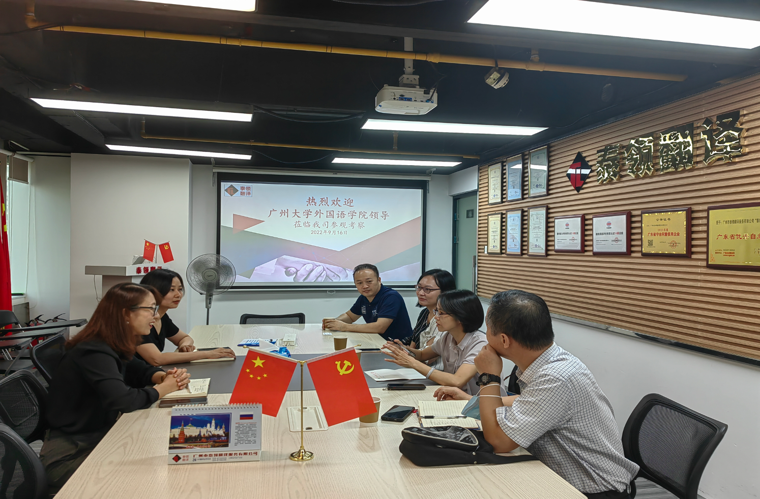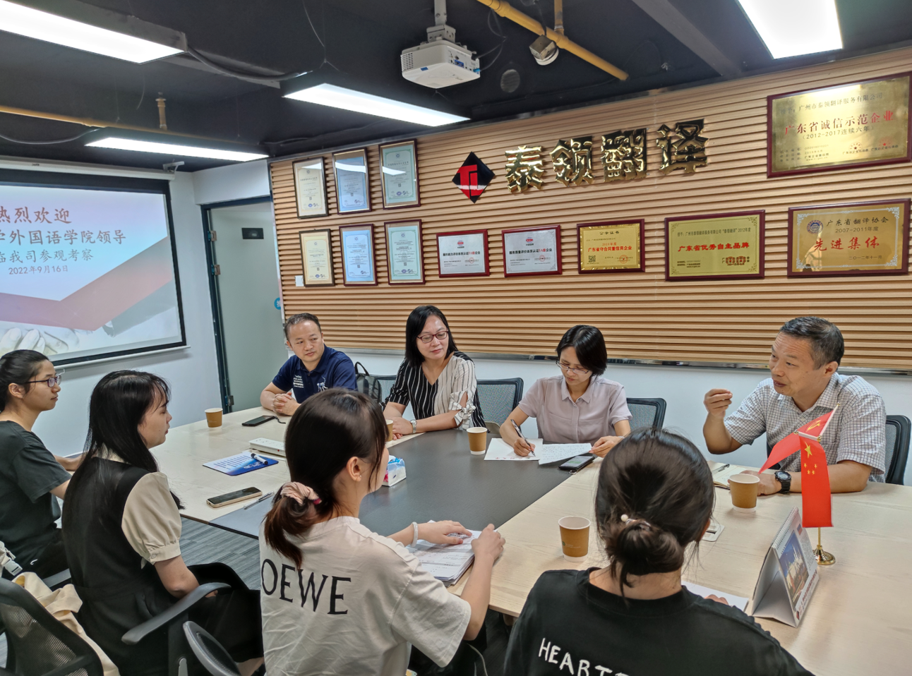 为进一步加强校外实习基地建设,深化院企合作交流,共同培养优秀专业人才,2022年9月16日上午10点,由我院蒋金运书记、倪秀华老师、曾超老师与吴吉松老师一行四人组成巡点检查小组,前往我院实习实践基地广州市越秀区泰领翻译服务有限公司(以下简称“泰领”)进行实习教学检查工作,并与泰领公司总经理程果女士、人力资源部英语负责人唐雅丹女士就院企合作、人才培养以及学生实习安排等开展座谈会。